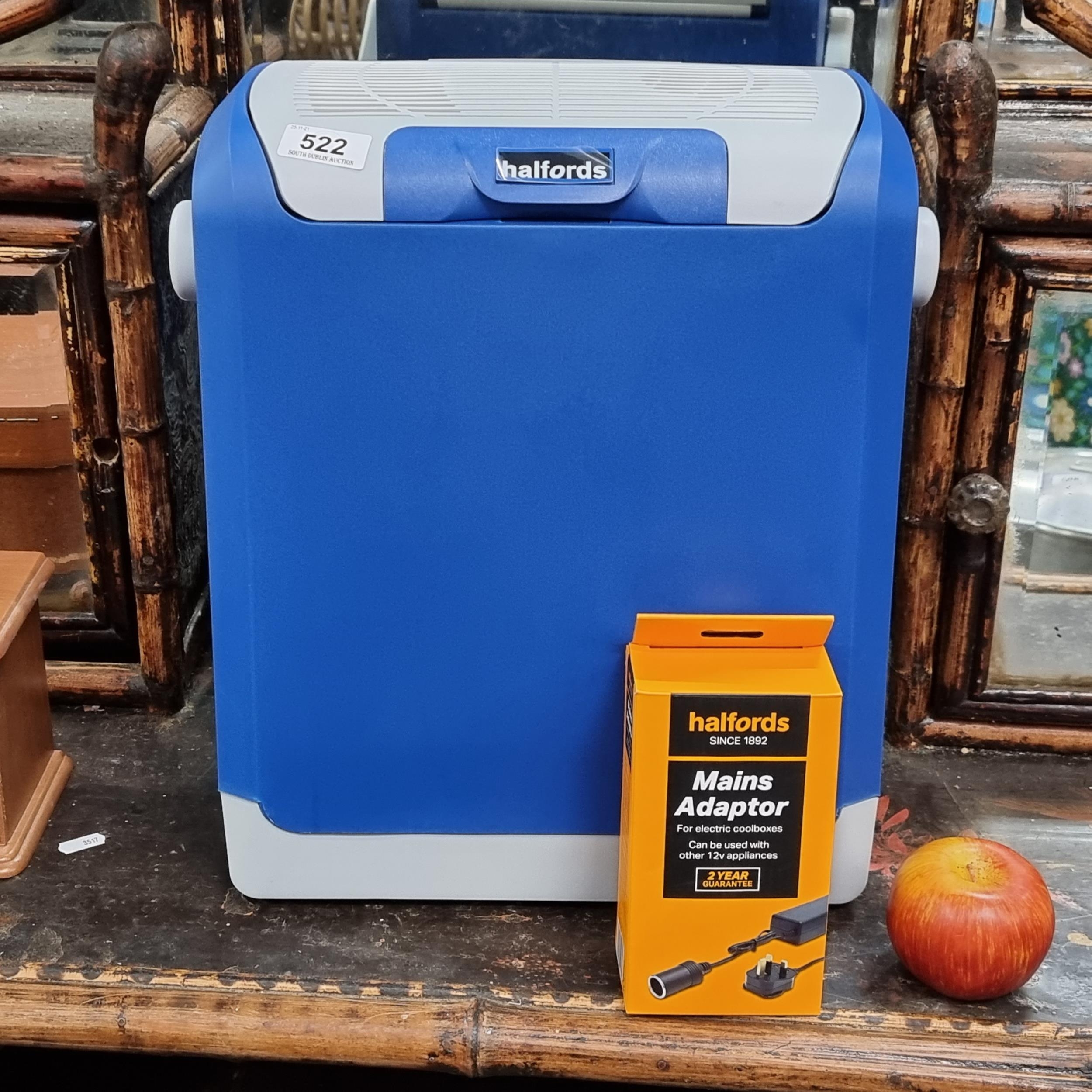 Halfords 14 Litre electric Plug in Cool Box in blue. Model nr: 237441 in very good condition.
