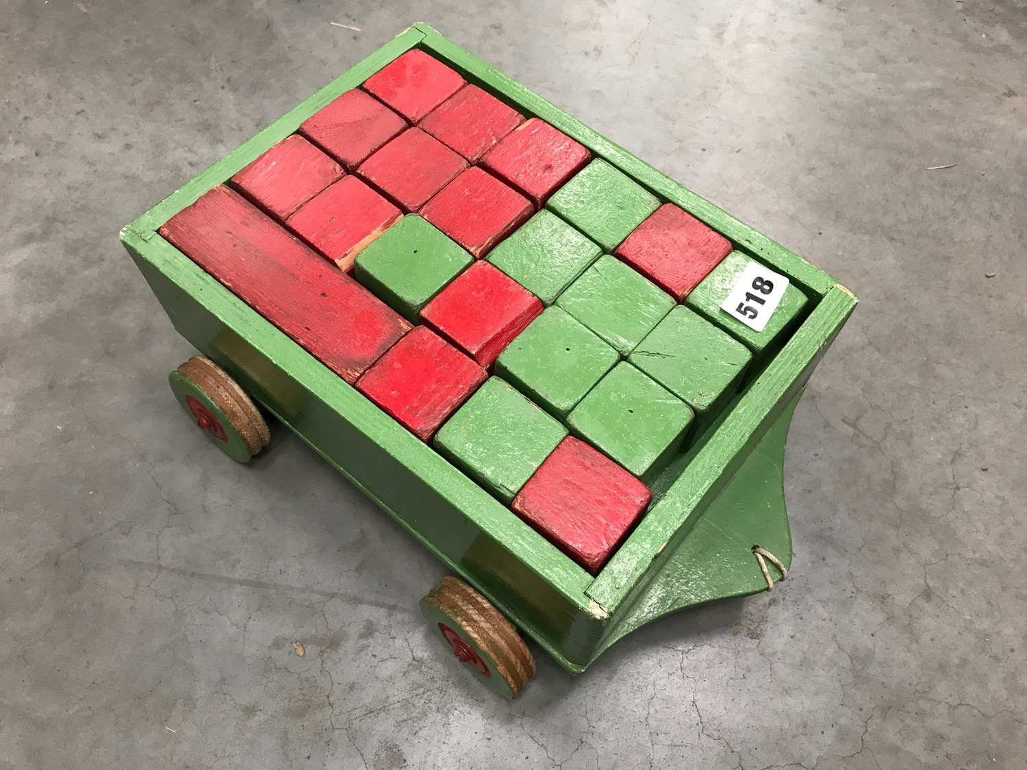 CHILDS WOODEN TROLLEY WITH WOODEN BLOCKS