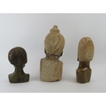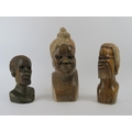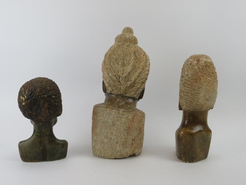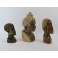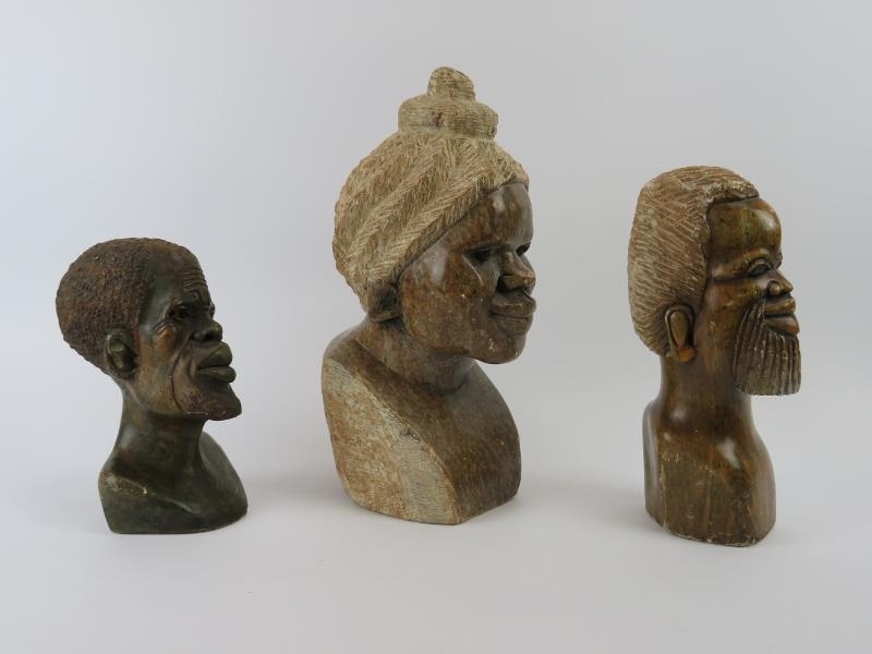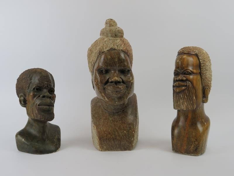 Three African hand carved stone heads. (3 items) 35 cm tallest height.