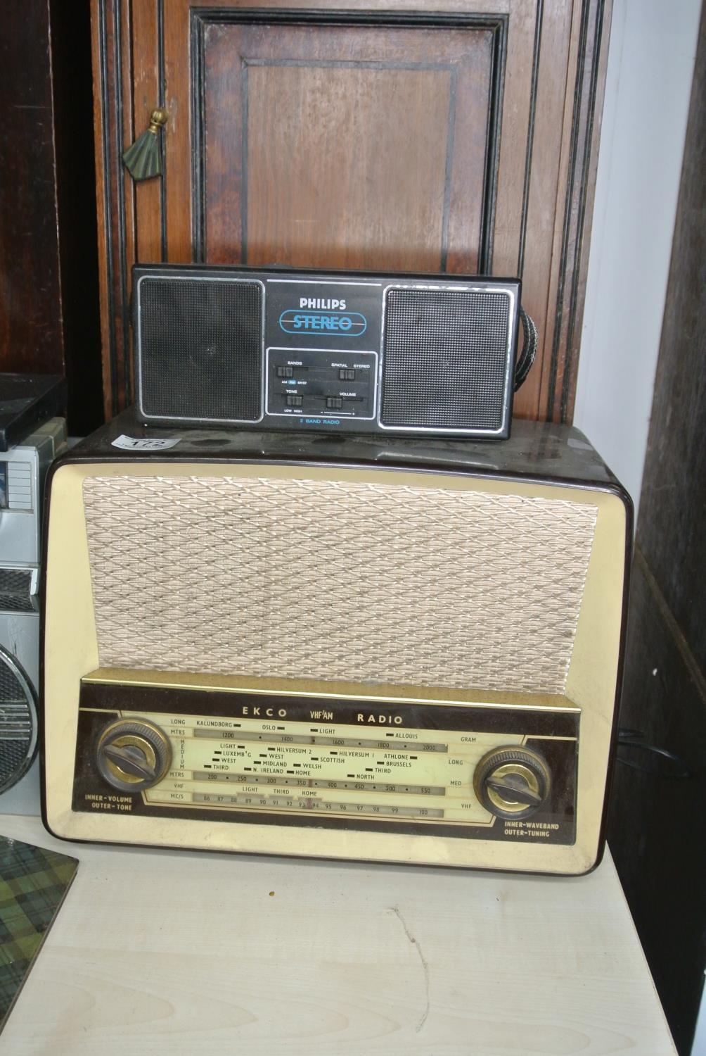 An vintage ECKO transistor radio along with a Phillips Stereo radio
