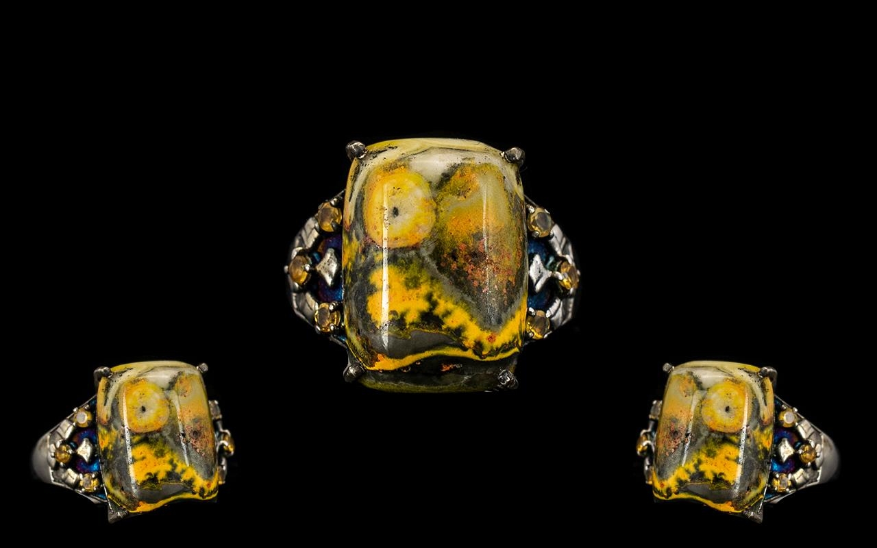 Silver Vermeil Bumble Bee Citrine/Jasper Gem Set Dress Ring. The central stone measuring approximately 12.5 carats. Ring size O.