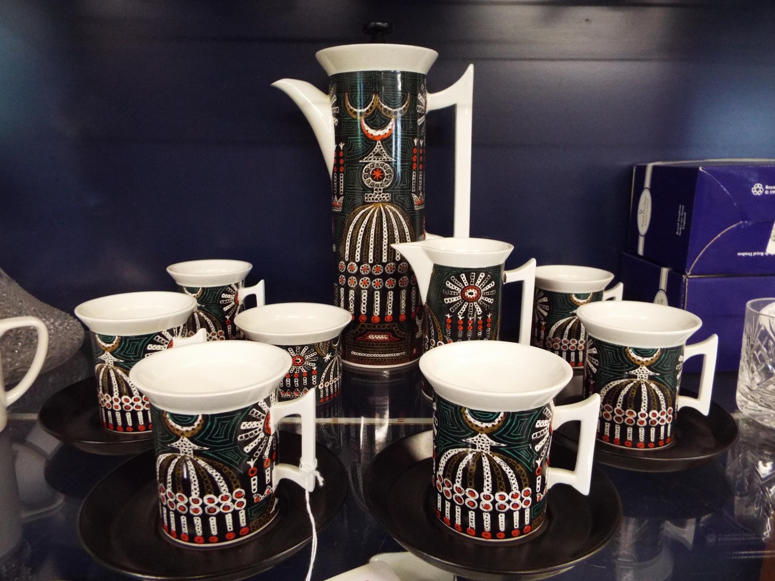 A Portmeirion 'Magic City' six person coffee set designed by Susan Williams-Ellis, to include cups, saucers, coffee pot, jug and sugar bowl