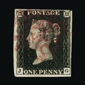 Great Britain - QV (line engraved) : (SG 2g) 1840 1d black, plate 7, JG, 4 margins except just touched at NE corner, with MAGENTA Maltese Cross, fresh, fine used. Ex. Beresford BPA Cert. (2019) Cat £3000 (image available) [US1]