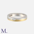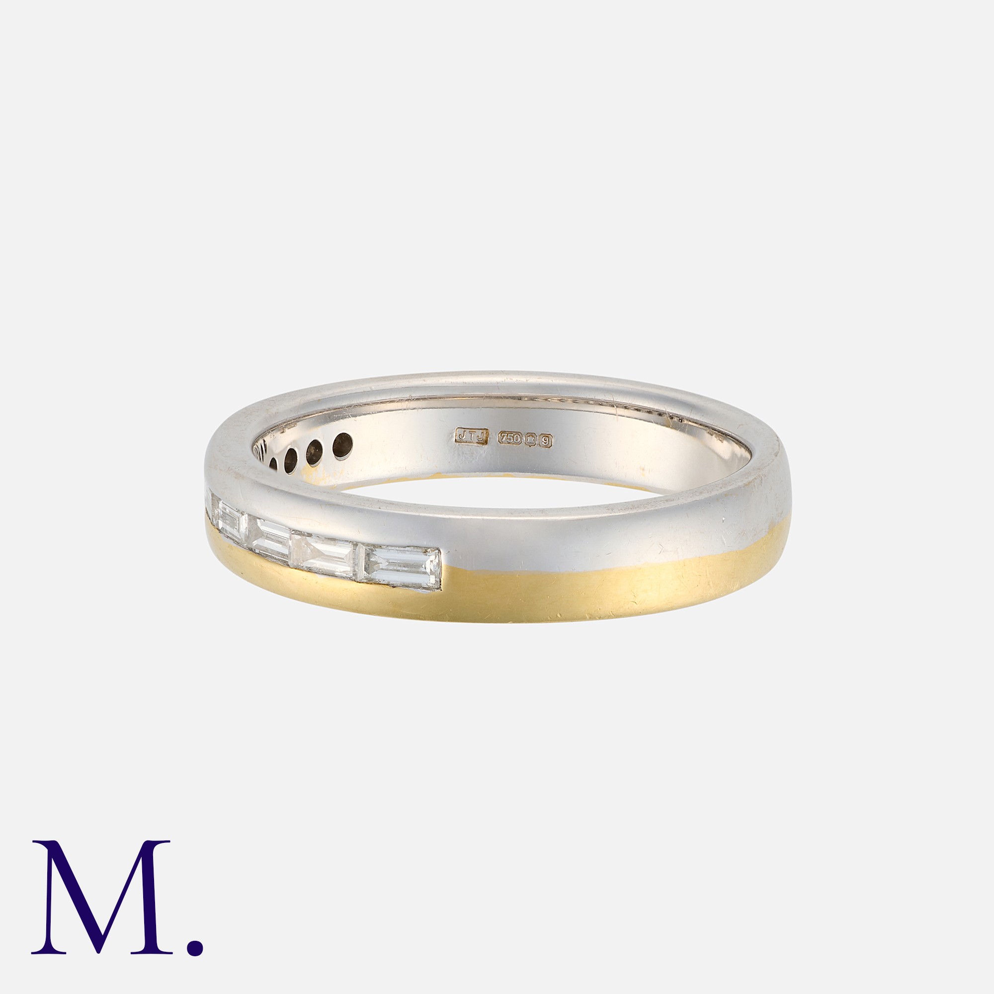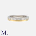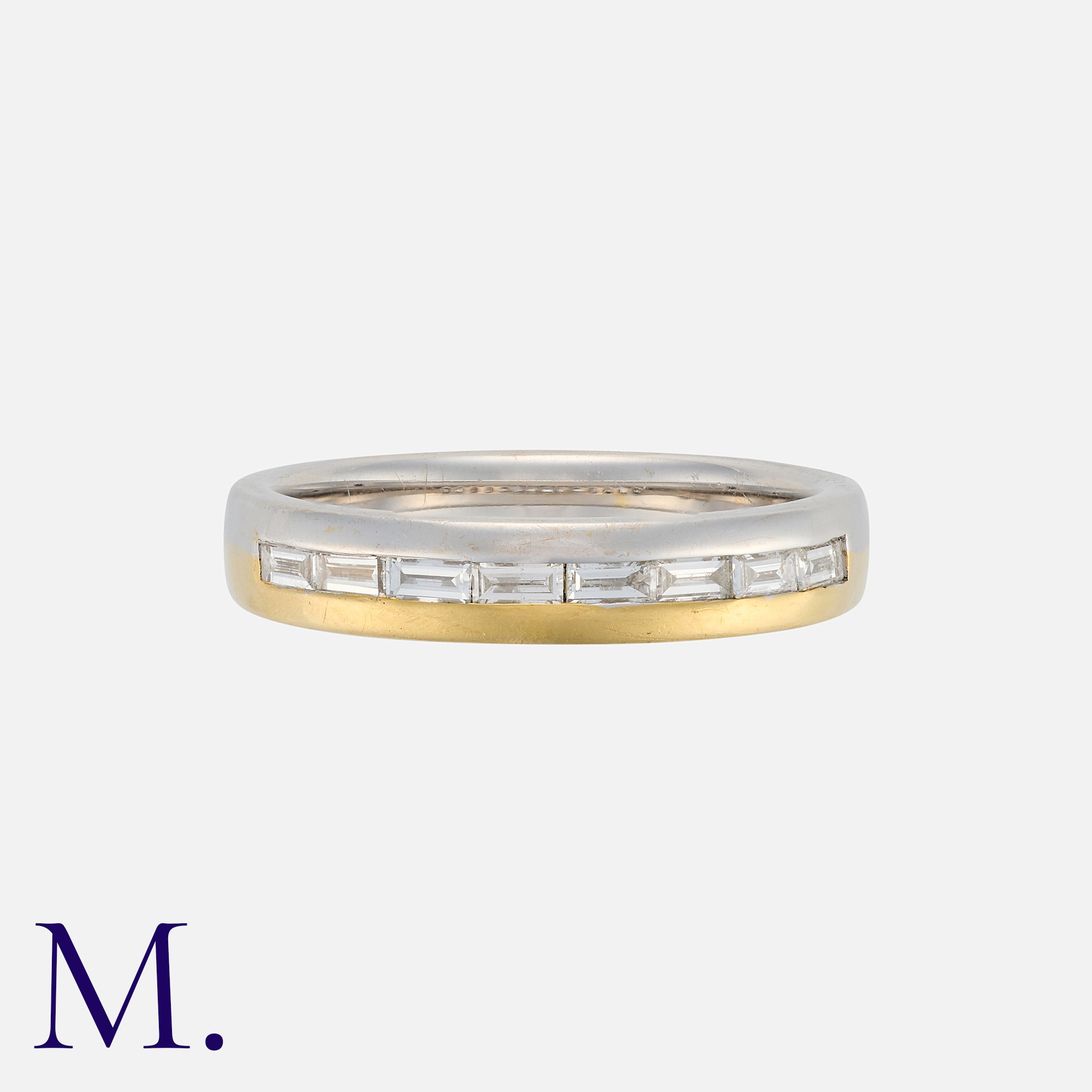 A Diamond Band Ring in 18 carat white and yellow gold, set with a row of eight baguette cut diamonds. Hallmark for 18 carat gold.