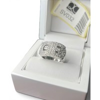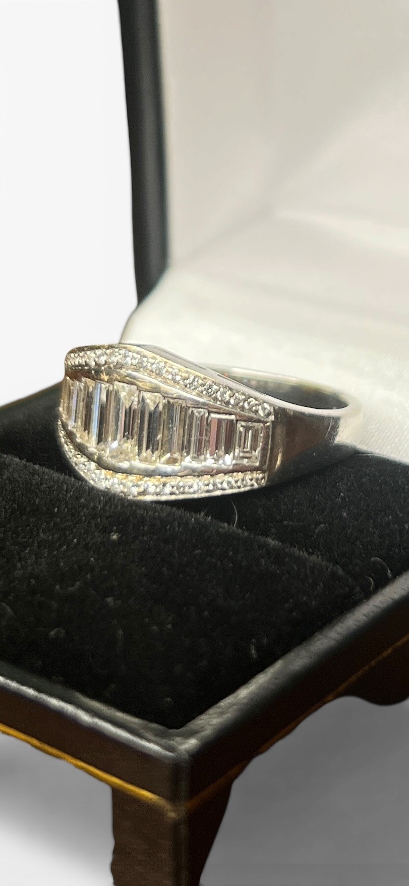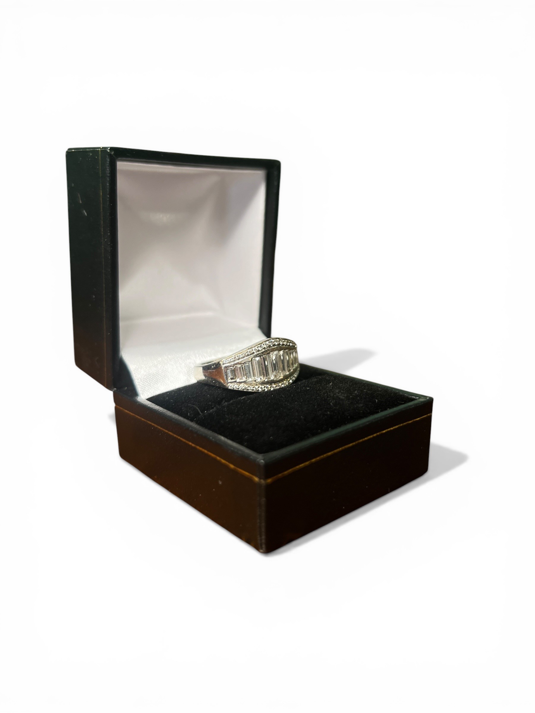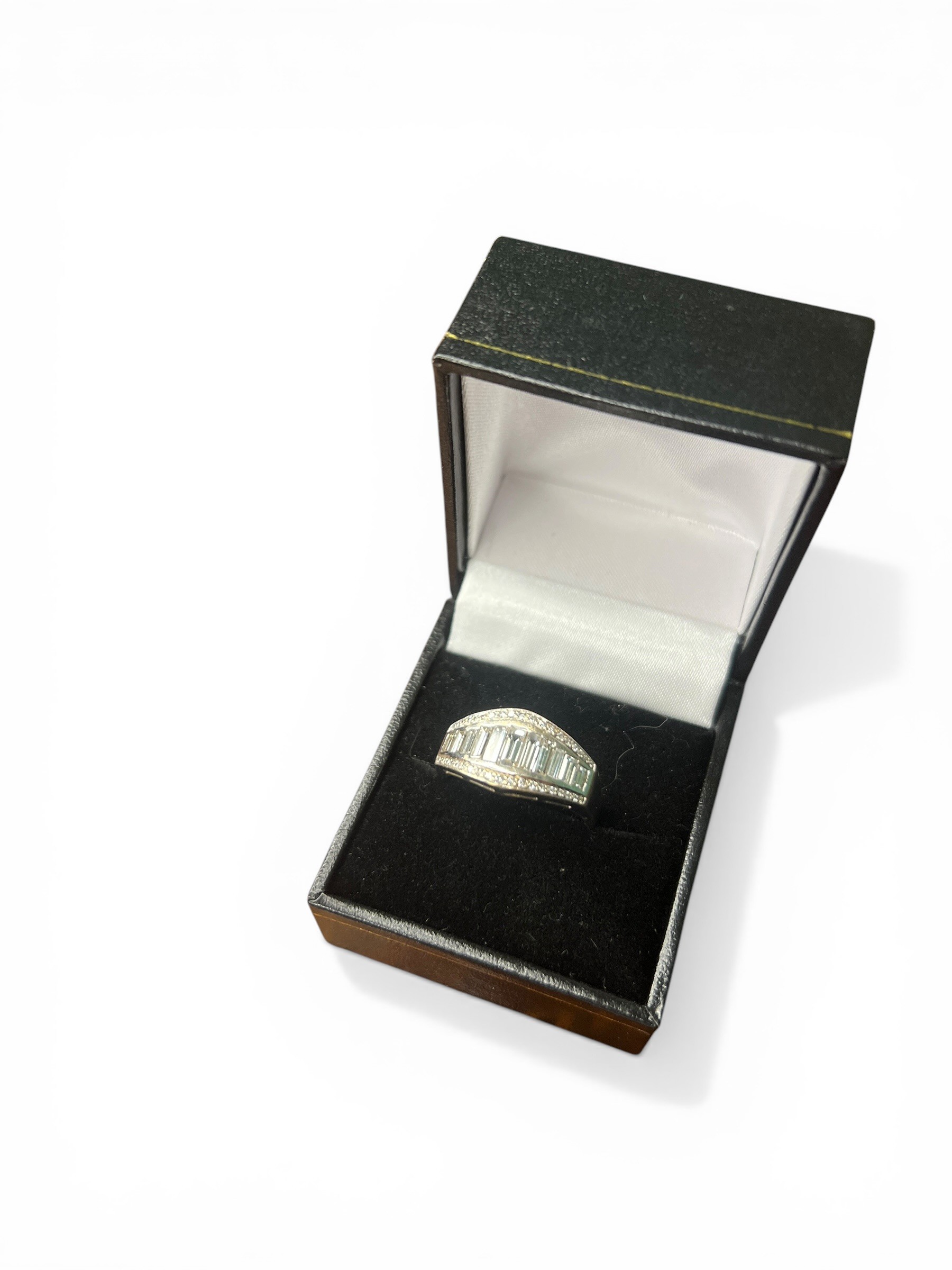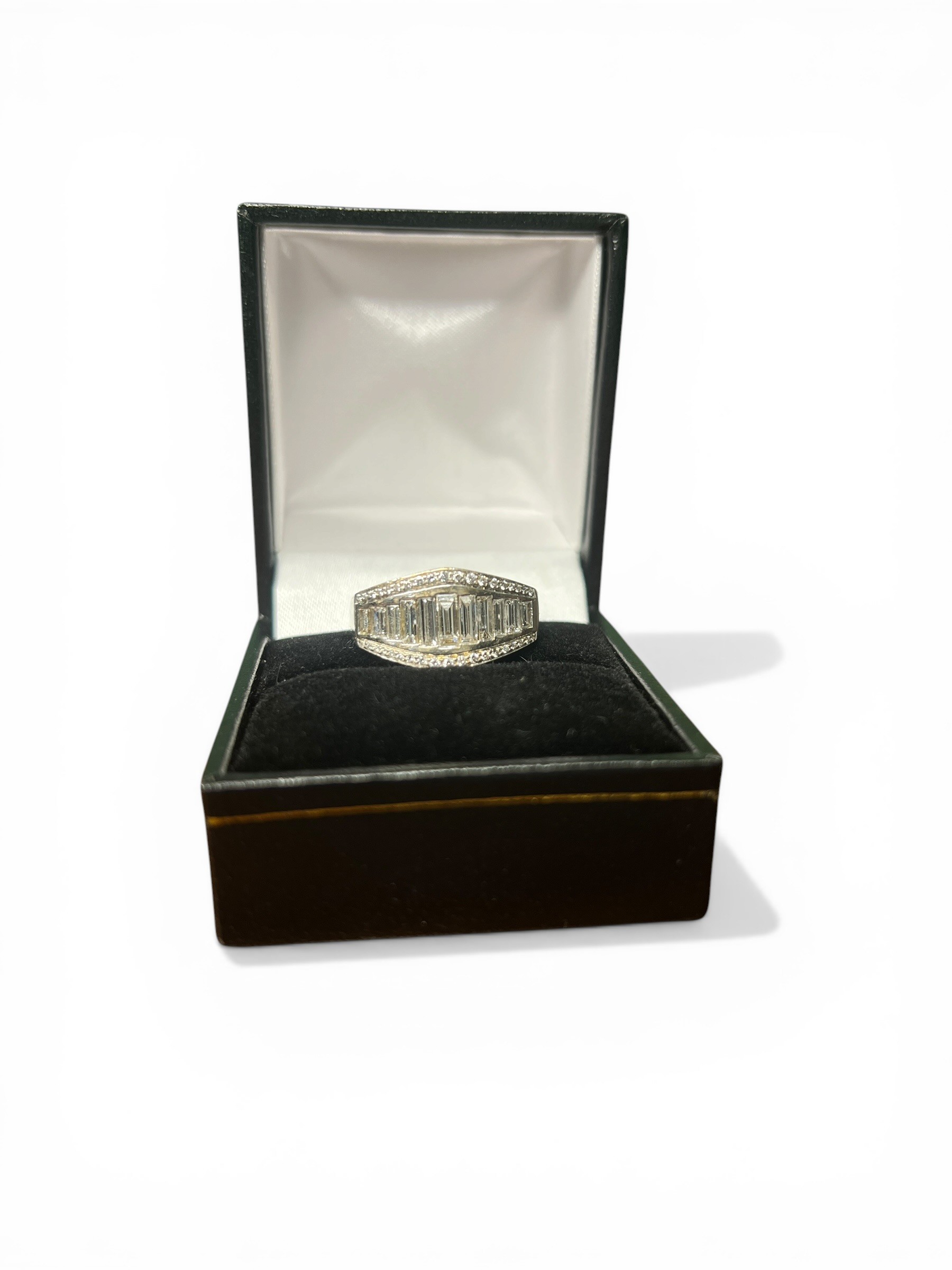 18ct White Gold Ring Set with Emerald-Cut Diamonds and Smaller Accent Diamonds