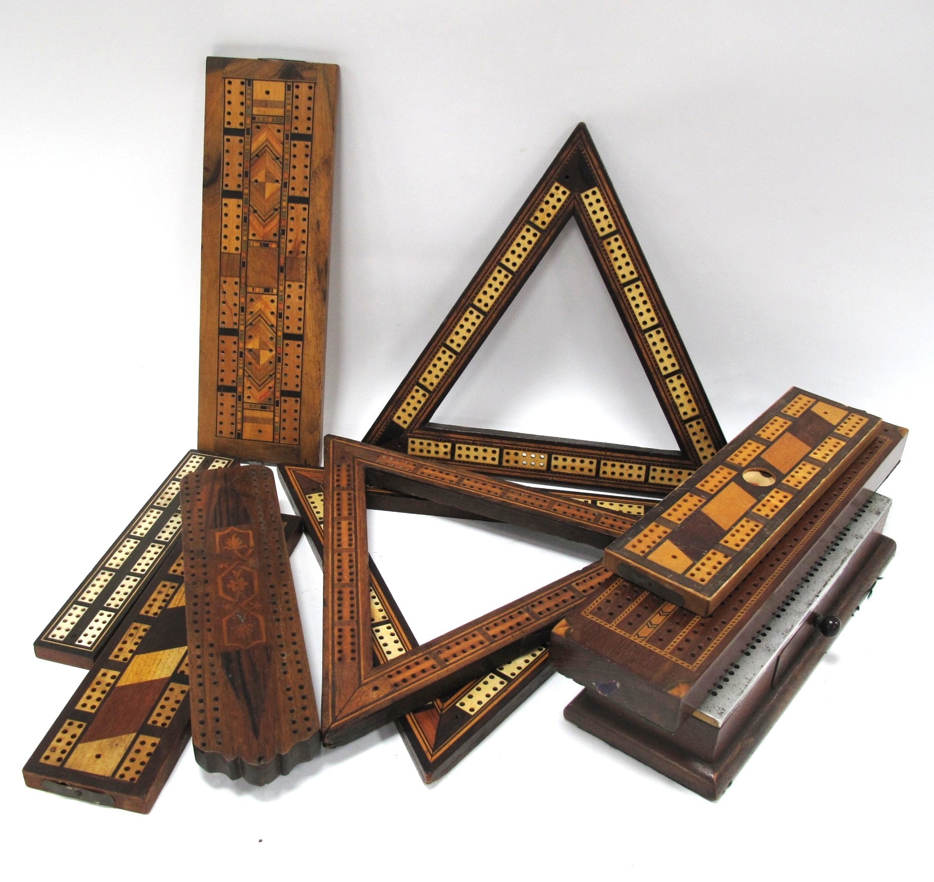 Tringular Shaped Inlaid Crib Boards, and other crib boards:- One Tray.