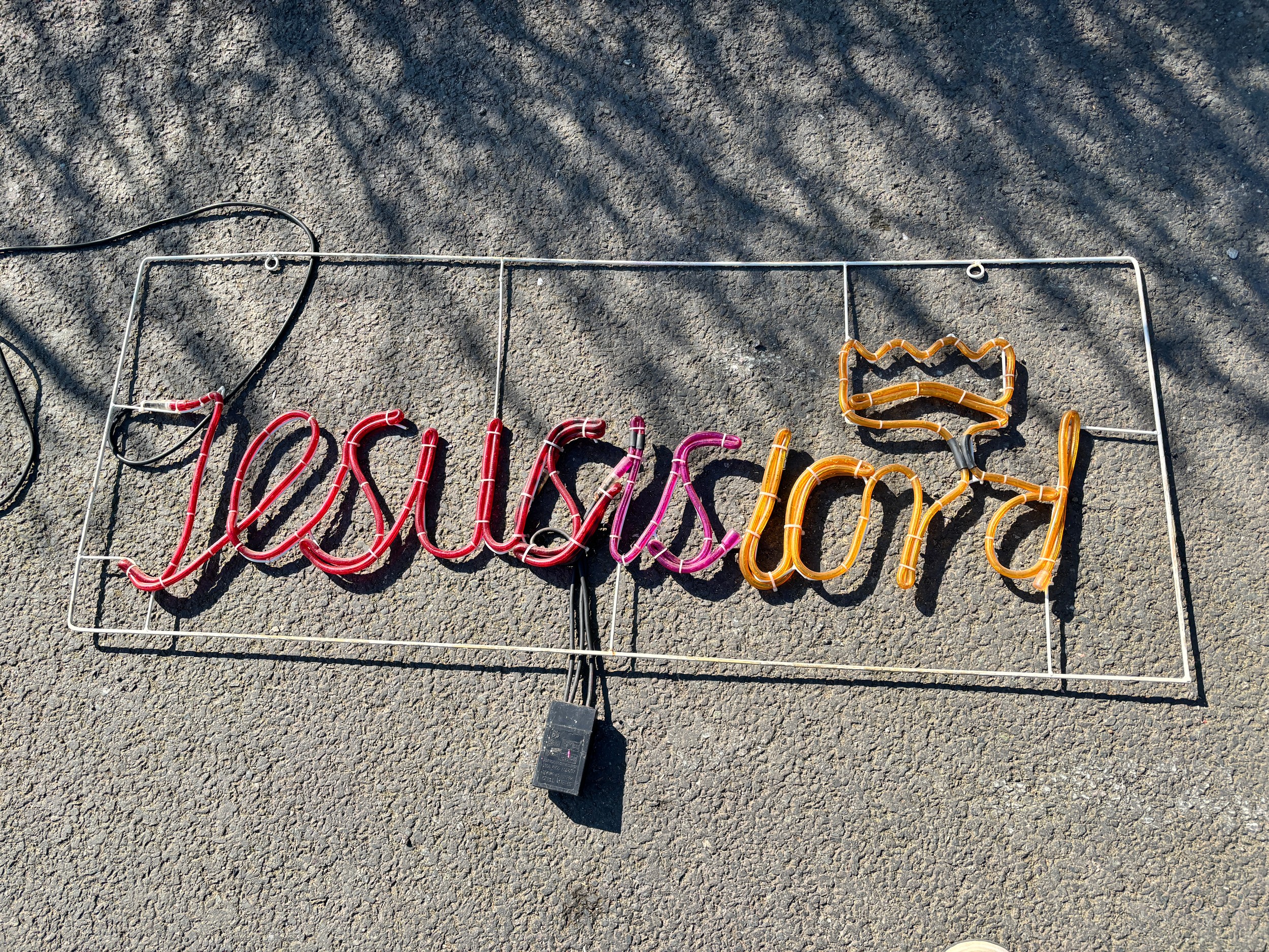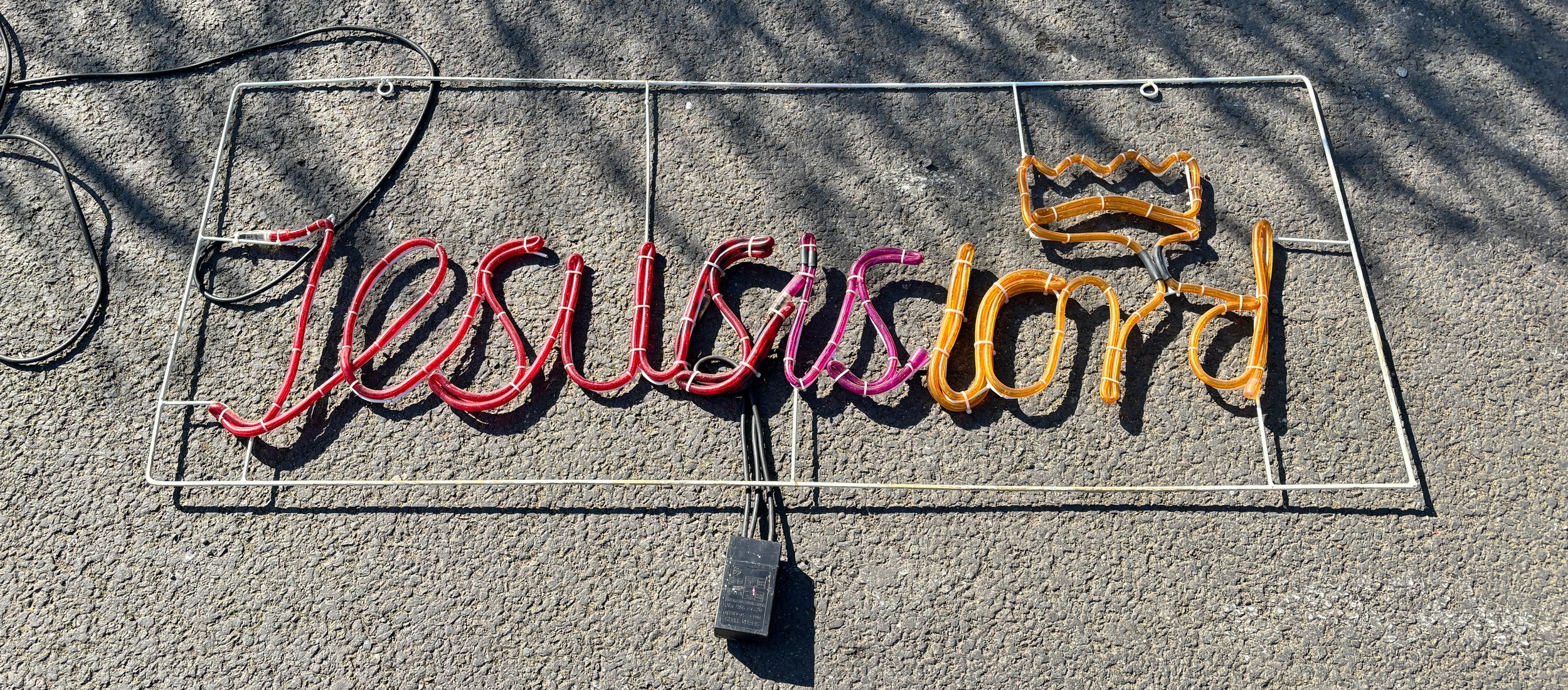 "Jesus is Lord" light up sign measures approximately 22 inches wide 56 inches wide, untested