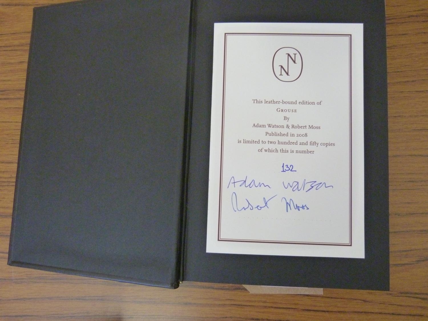 WATSON ADAM & MOSS ROBERT. Grouse. Signed ltd. ed. 132/250 in dark calf. Col. & other illus. Slip case. A.e.g. New Naturalist Series, 2008.