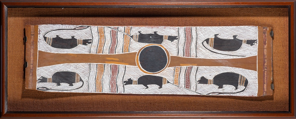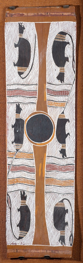 The artist was a ceremonial leader of the Manggalili people and was a famous painter who recorded myths of his tribe on bark. Such works hang in museums and art galleries and are sought after because of their scarcity. Maymuru devoted the majority of his time to teaching law and ceremony.