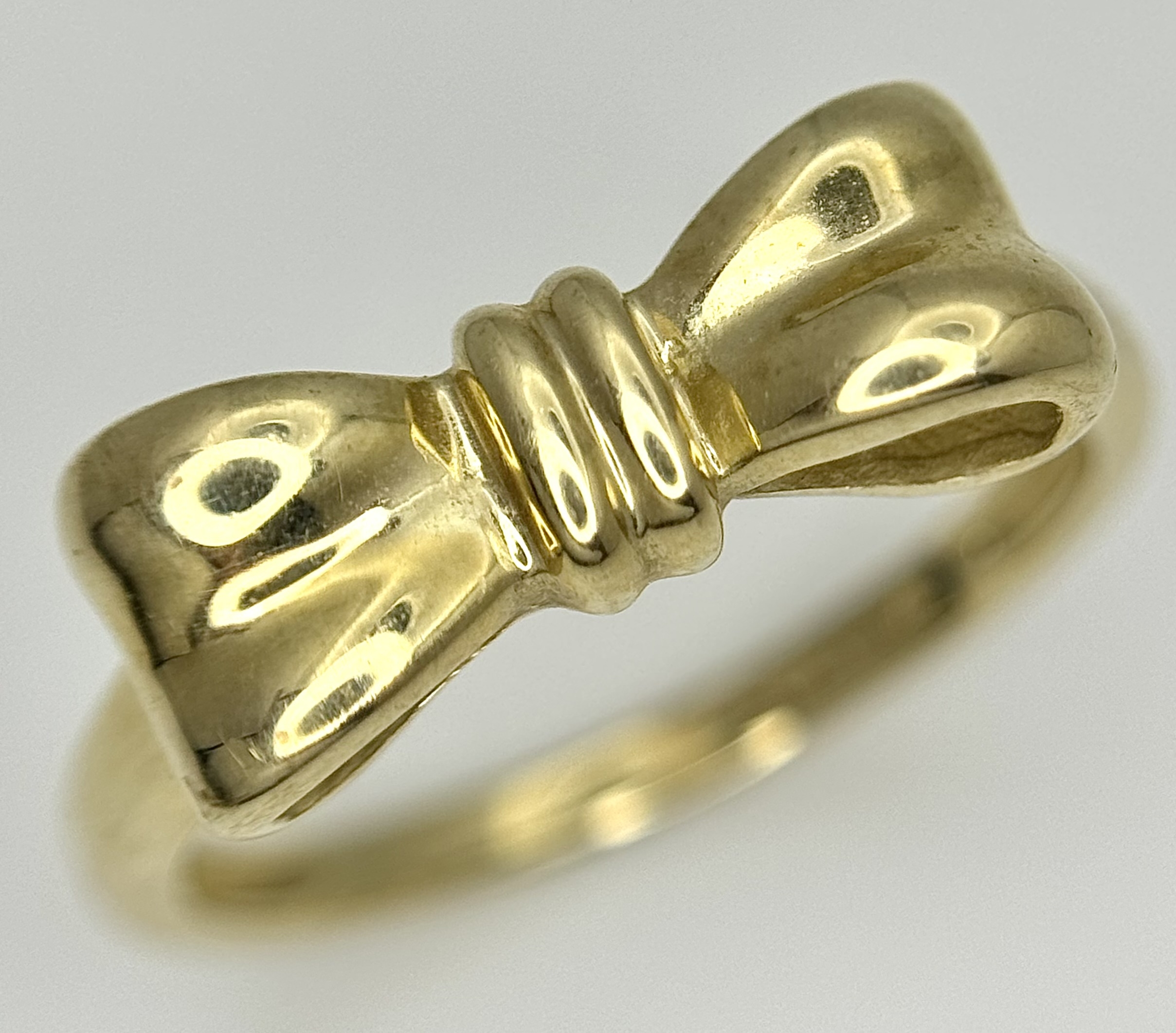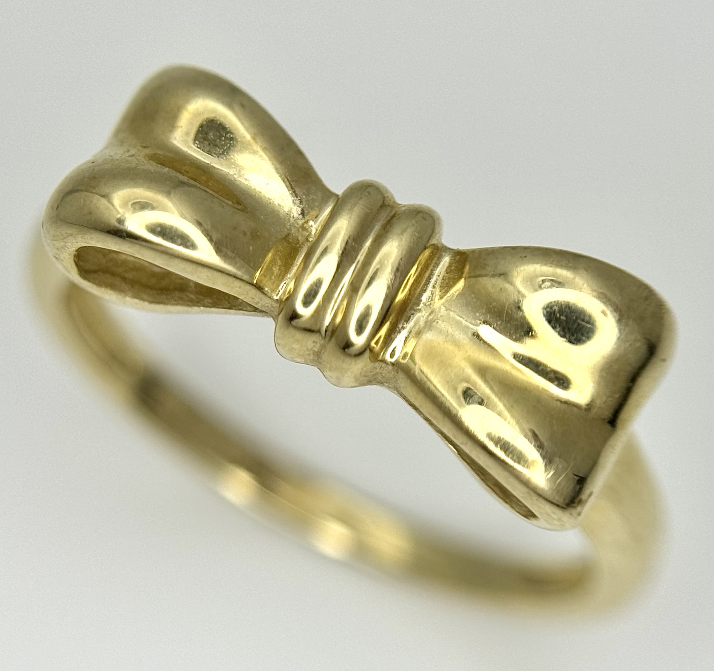 A 9K Yellow Gold Ring in Bow-Tie Form. Size P 1/2. 2.85g.