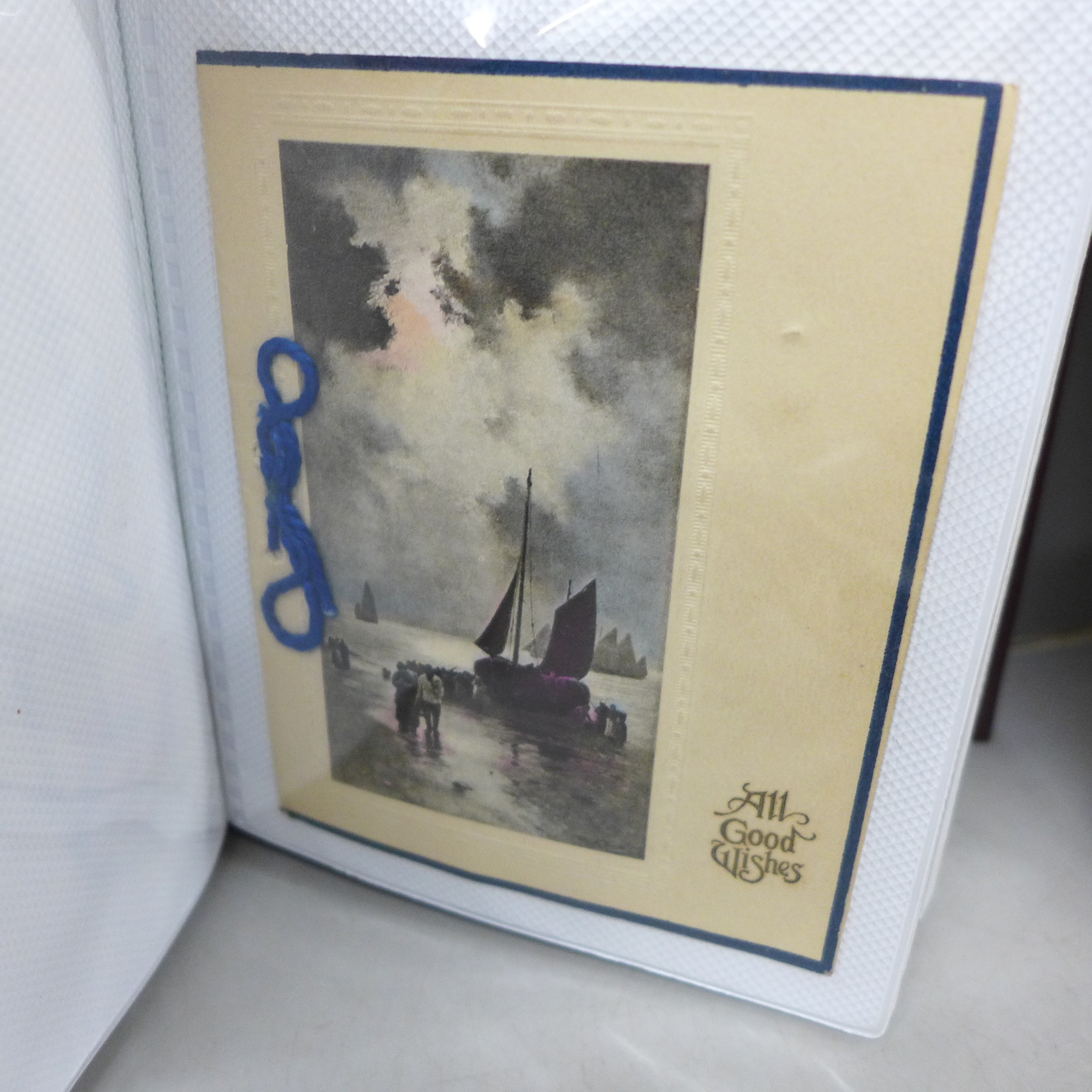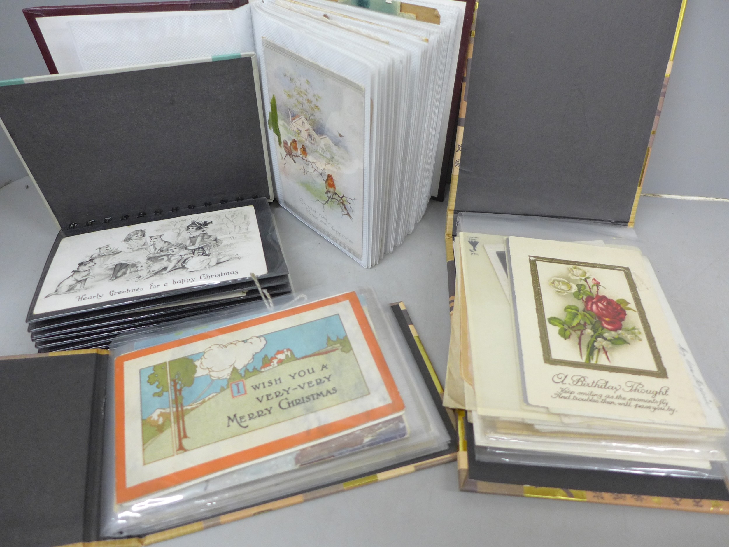 A collection of vintage greetings cards, mainly from early 20th century, (four albums)
