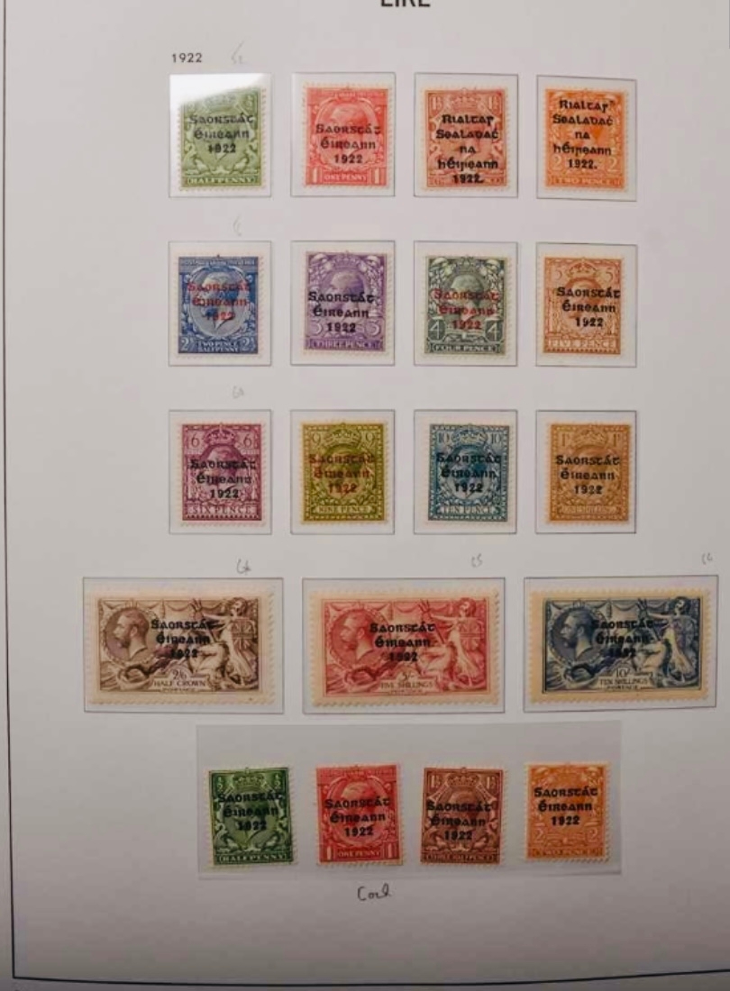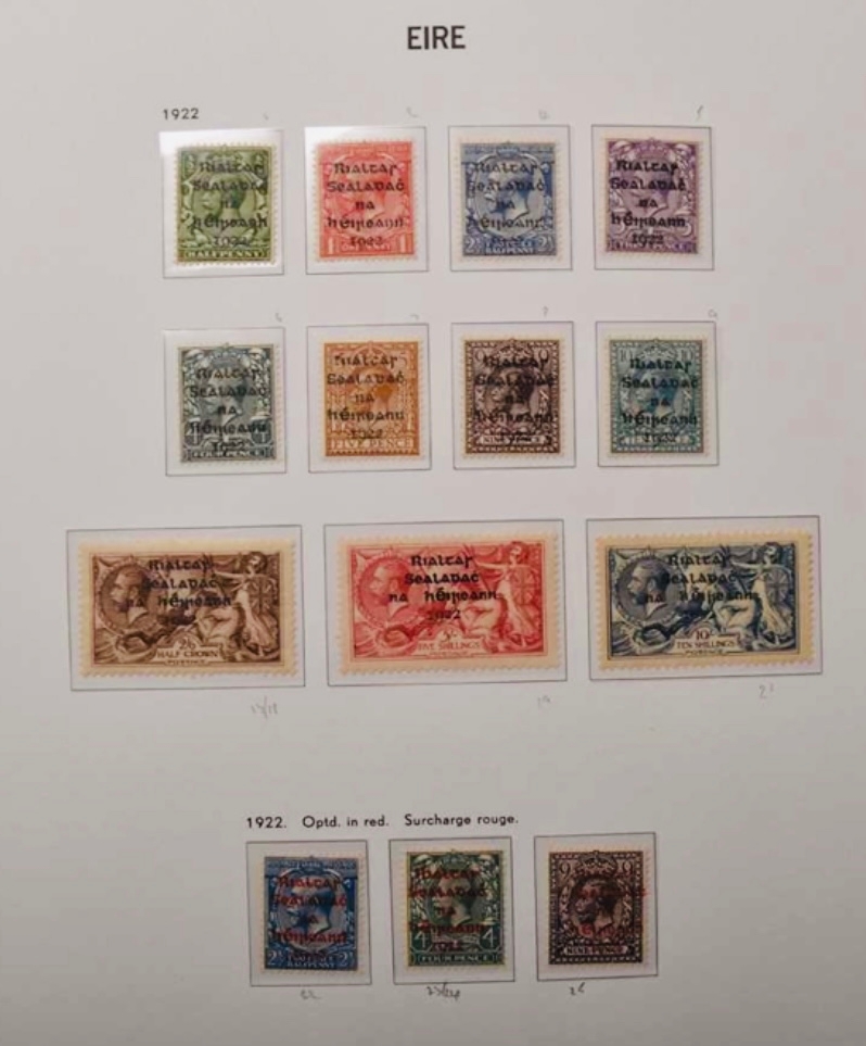 IRELAND two sets of 1922 overprinted Seahorse mint stamps and other sets on two Eire album pages