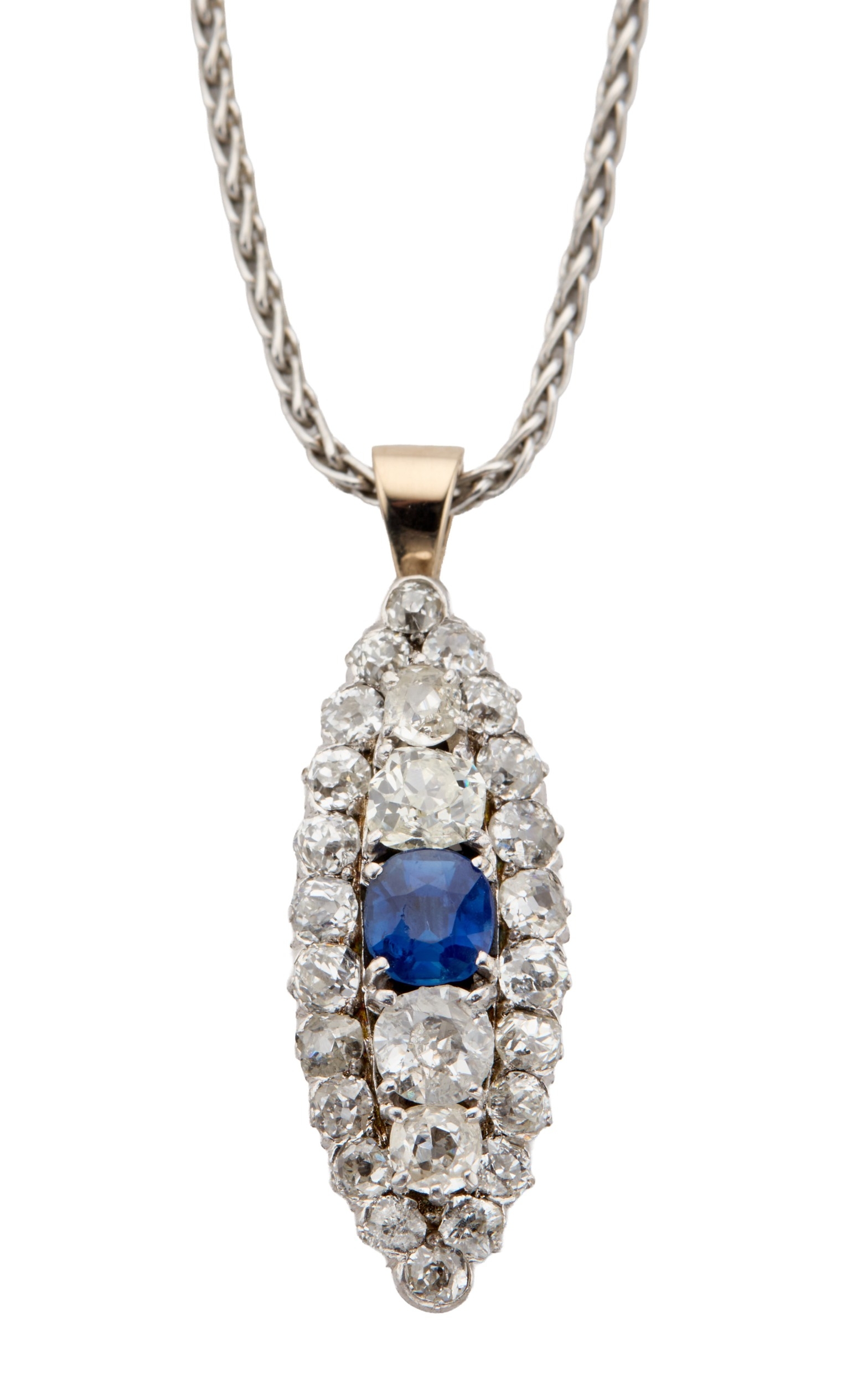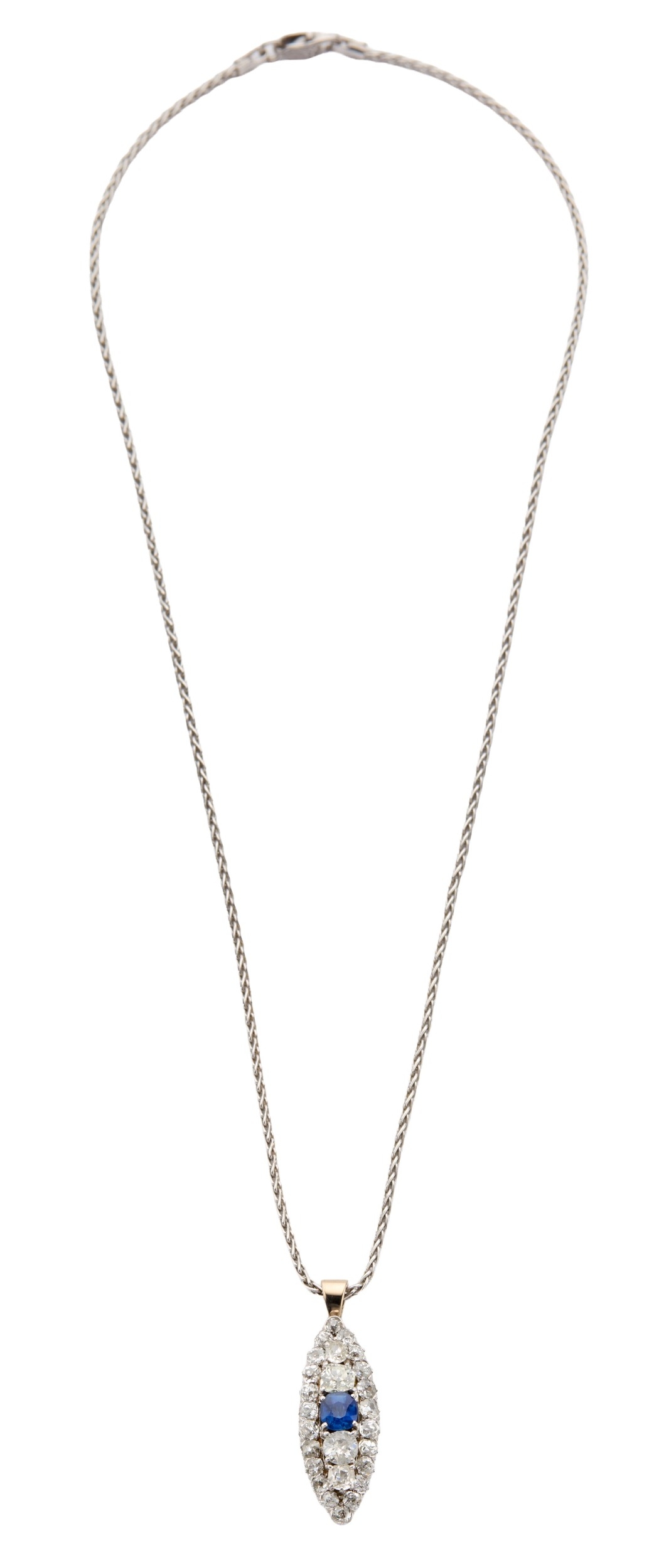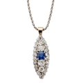 A SAPPHIRE AND DIAMOND MARQUISE SHAPED PENDANT NECKLACE