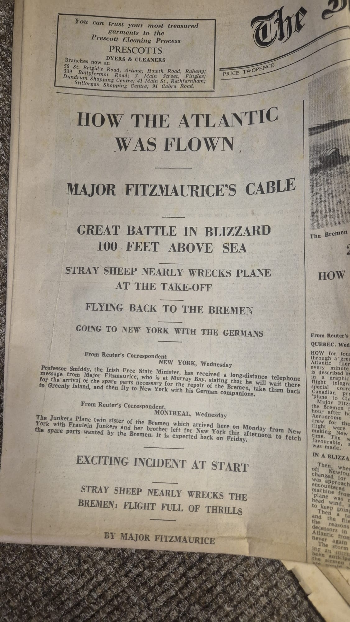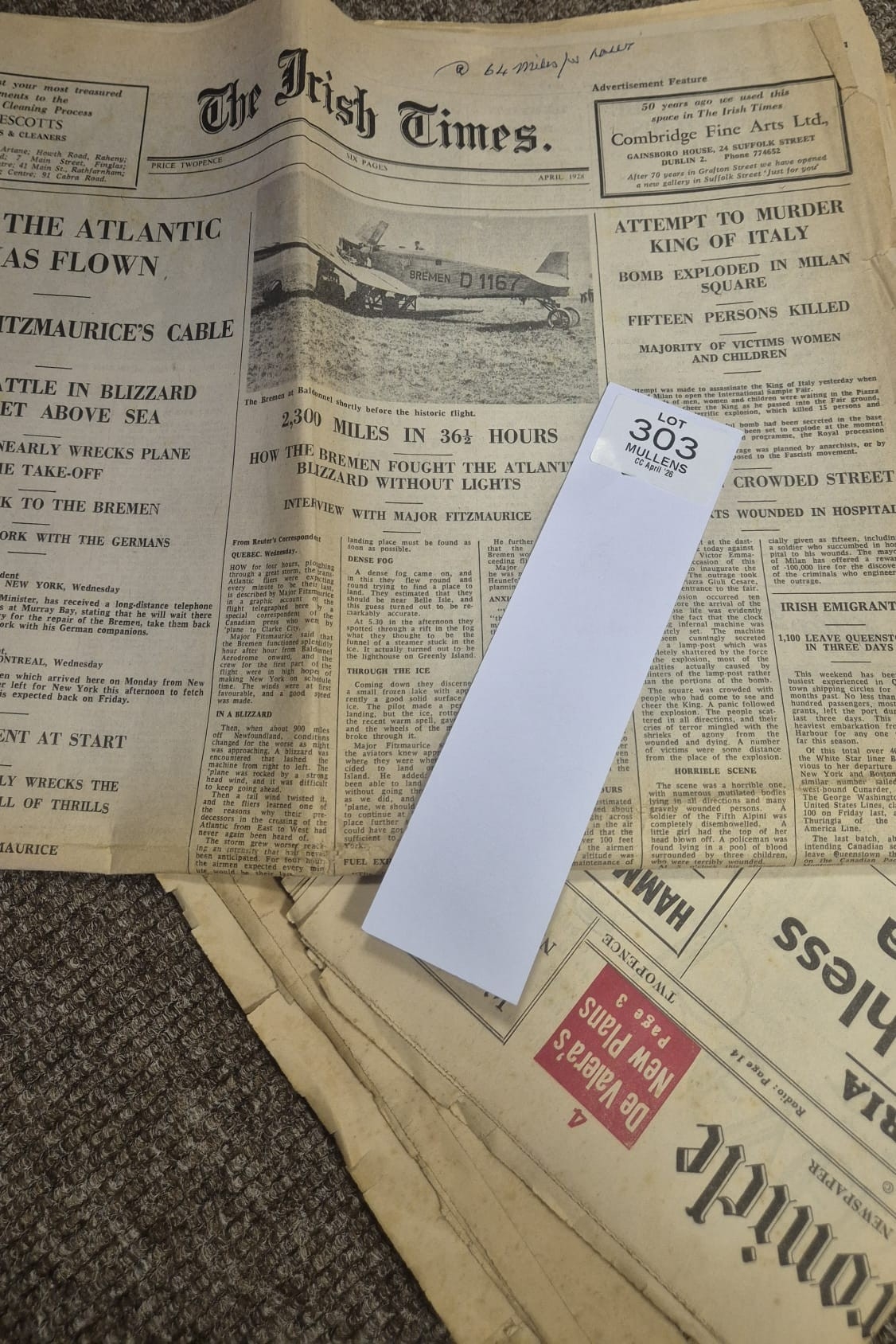 A COLLECTION OF ANTIQUE AND VINTAGE NEWSPAPERS to include The Irish Times of April 1928 featuring coverage of Transatlantic flight to Baldonnell by Major Fitzmaurice