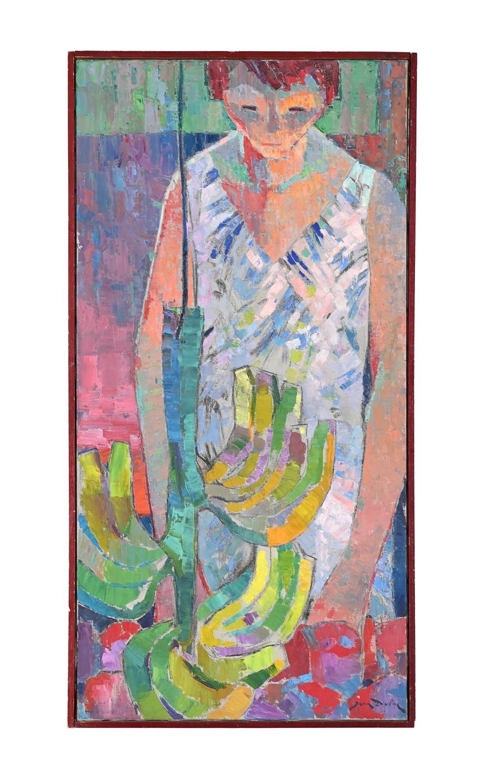 λ JEAN DULAC (FRENCH 1902-1968)LE REGIME DE BANANESOil on canvasSigned (lower right) signed, titled, dated 1960 and inscribed to stretcher (verso)100 x 50cm (39¬ x 19« in.)Measurements do not include the frame unless specified. Please note Dreweatts are not liable for damage to frames or mounts.