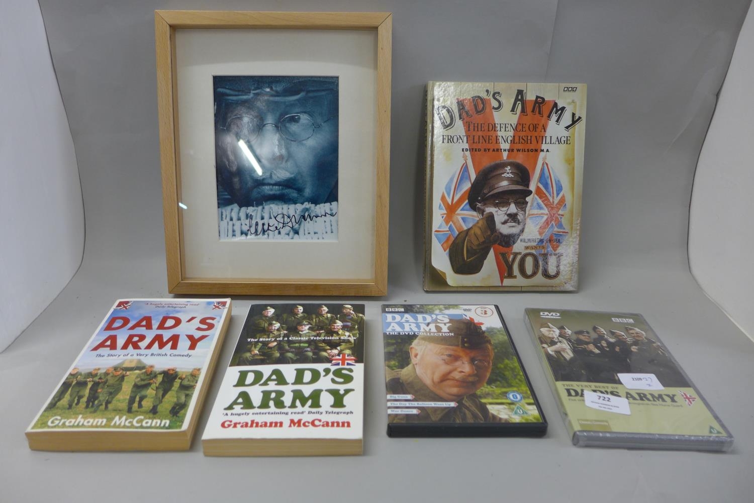 Dad's Army, a signed Clive Dunn photograph, framed, with certificate, three books and two DVD's