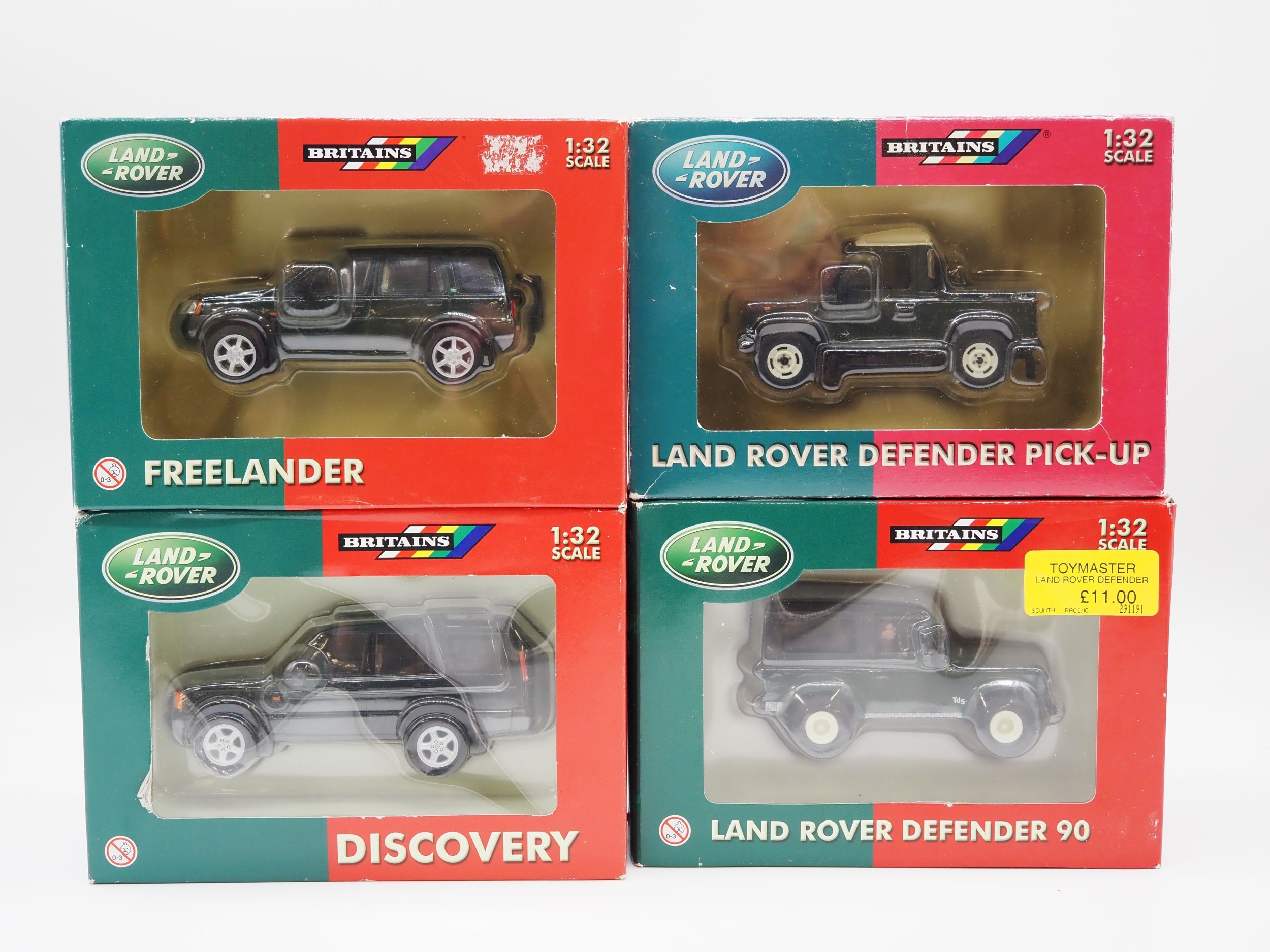 Britains 1:32 scale boxed model Land Rover Freelander, Discovery, Defender 90 and Defender pick up