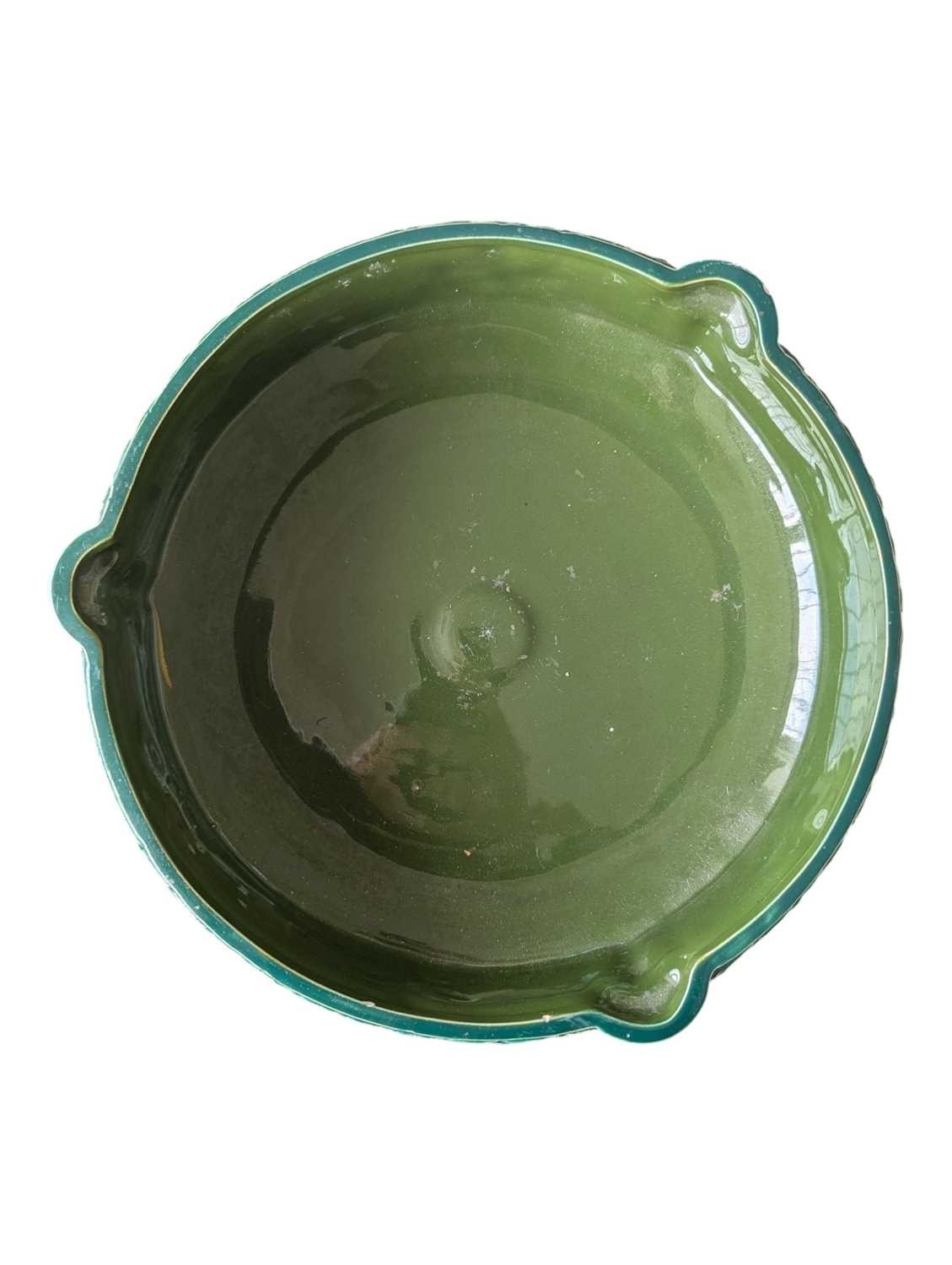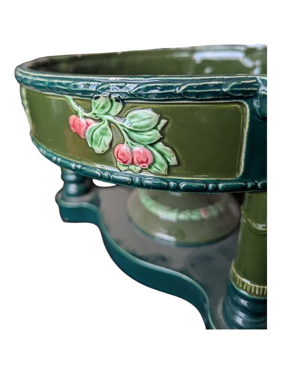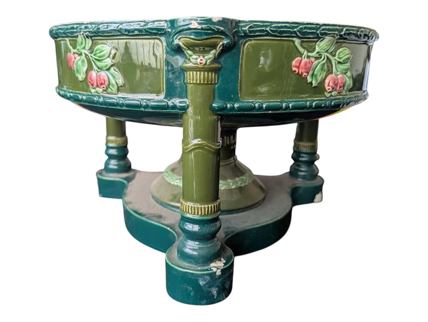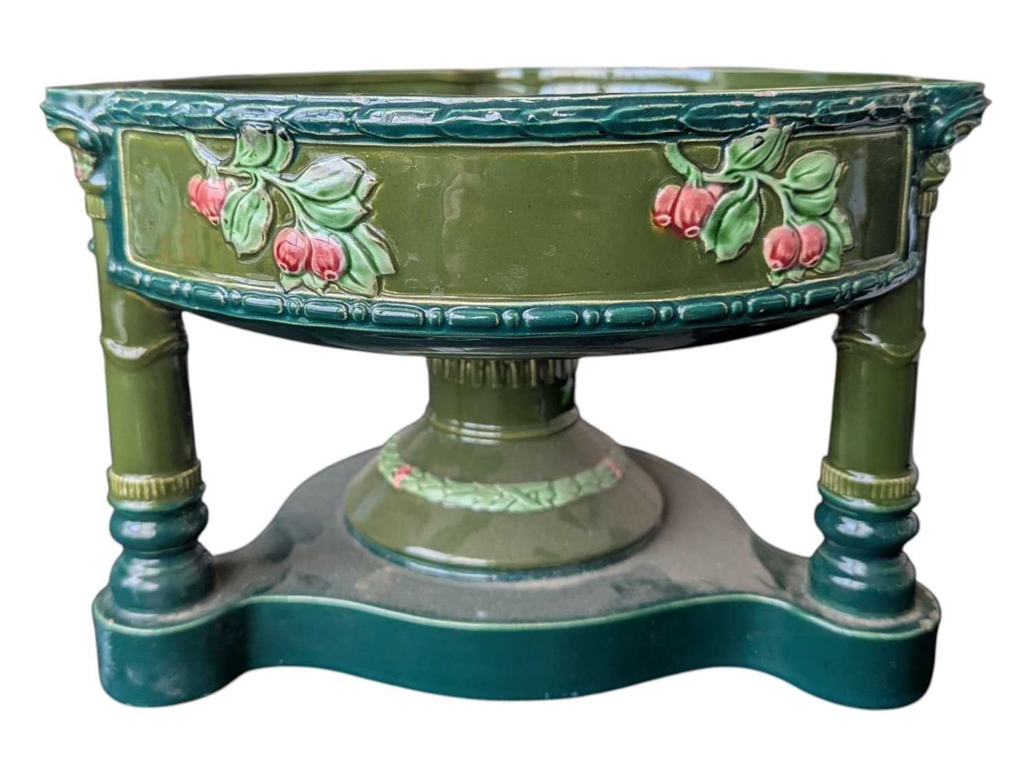 Manner of Eichwald - Early 20th century bohemian Art Nouveau Secessionist pottery tazza comport. Of circular form raised on three column supports in a green colourway. Featuring moulded foliate decoration. Numbered D 1125 to the base. Measuring approx. 18.5cm x 28cm x 28cm.