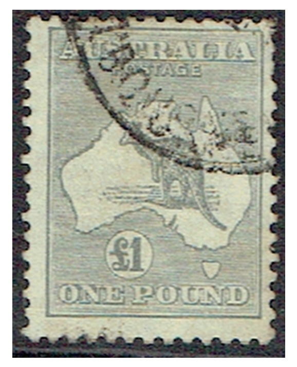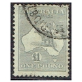 AUSTRALIA - 1935 C of A wmk £1 grey Roo corner cds used a few blunt perfs otherwise very sound for these, SG 137.
