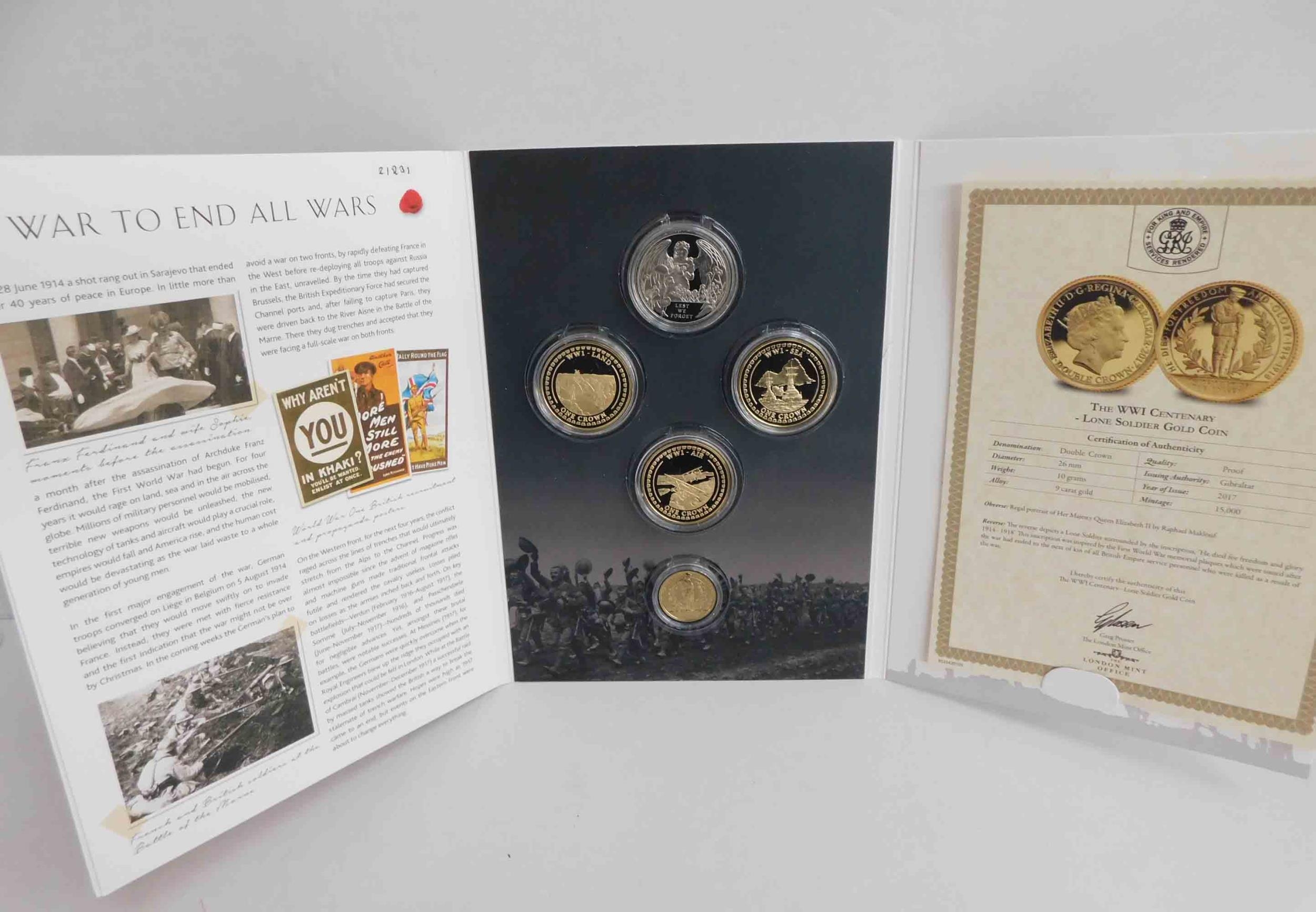 London Mint - A War to End all Wars coin set - including 9ct gold coin - 10g