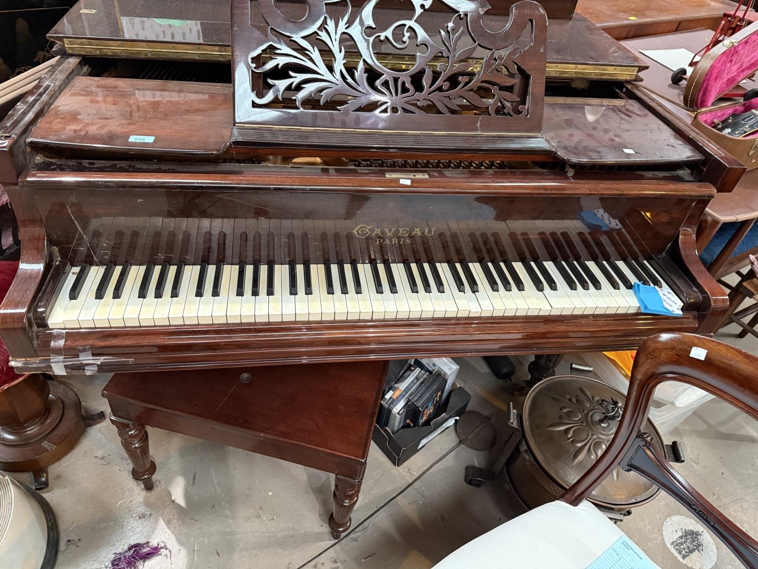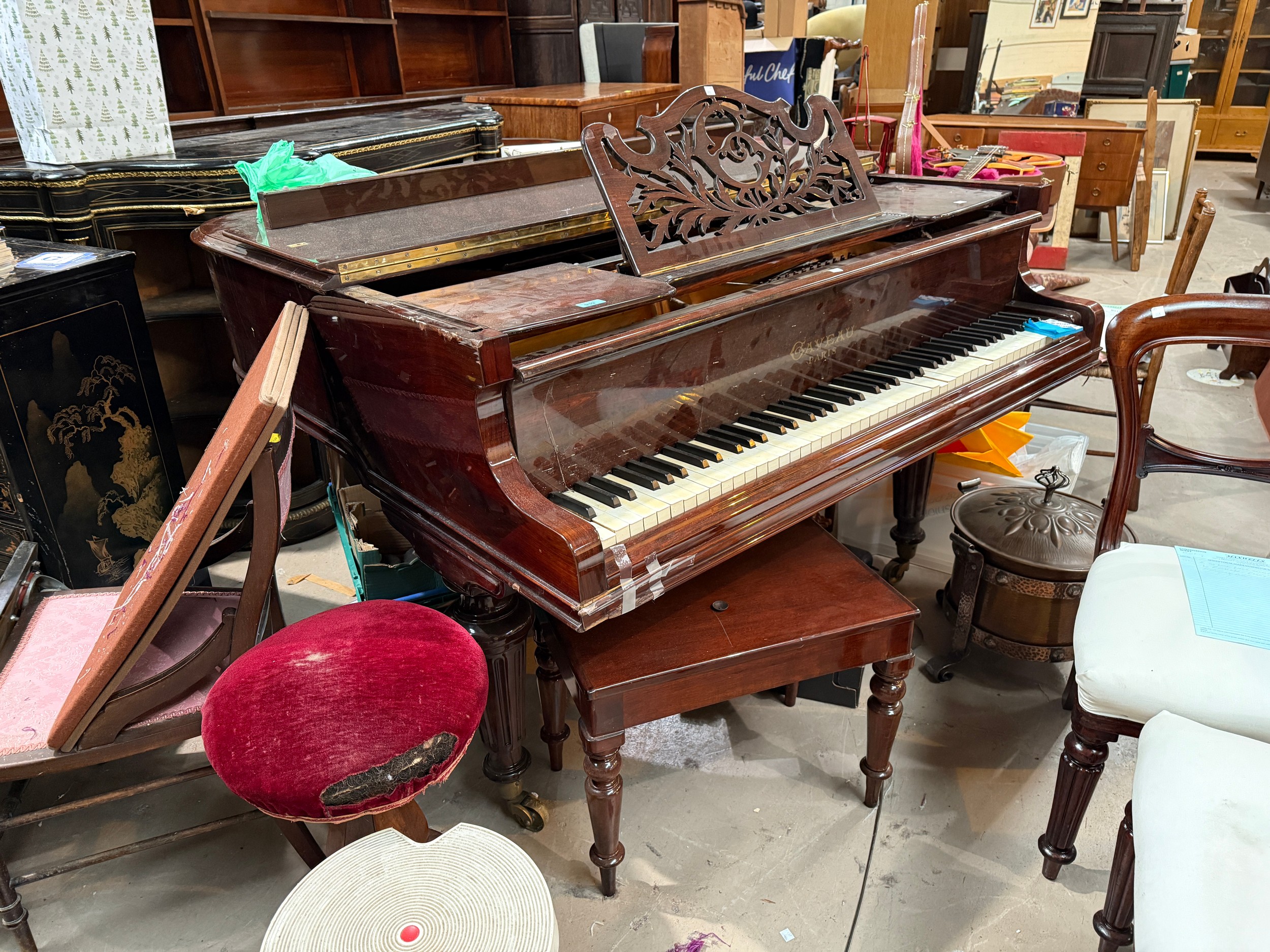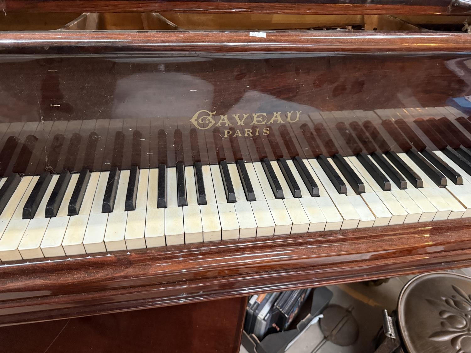 An early 20th century baby grand piano by Gaveau, Paris, iron framed, overstrung, in rosewood case and on turned tapering reeded legs and castors, Submission Reference 4DAW3J34