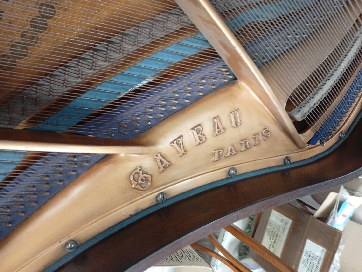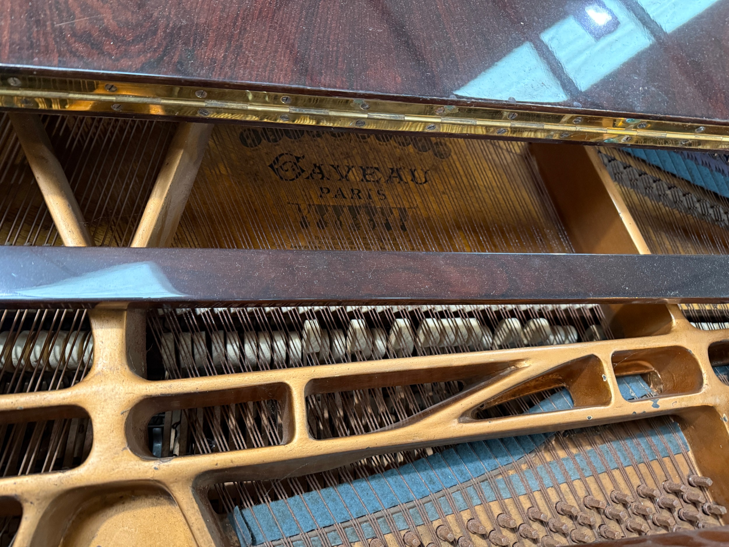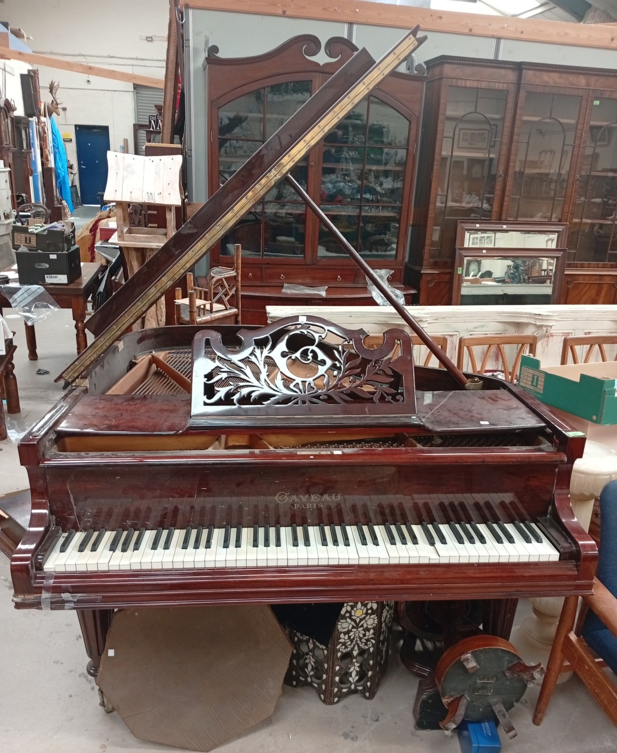 An early 20th century baby grand piano by Gaveau, Paris, iron framed, overstrung, in rosewood case and on turned tapering reeded legs and castors, Submission Reference 4DAW3J34