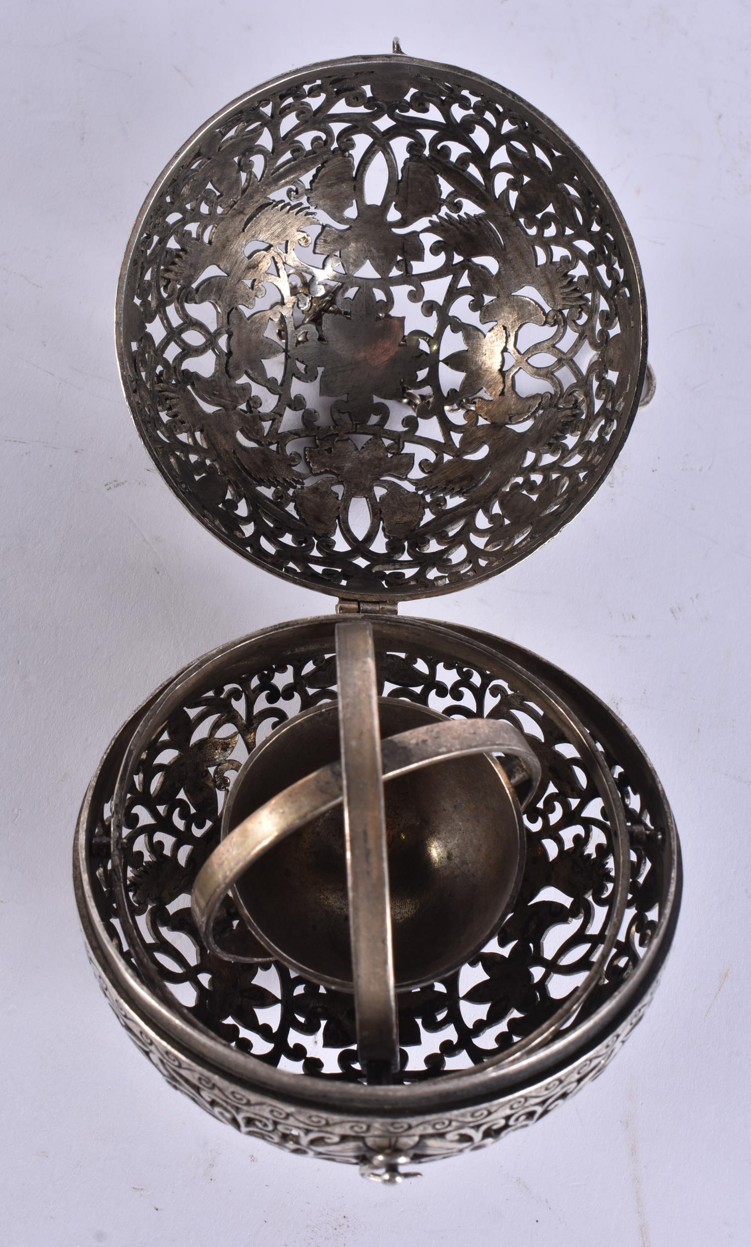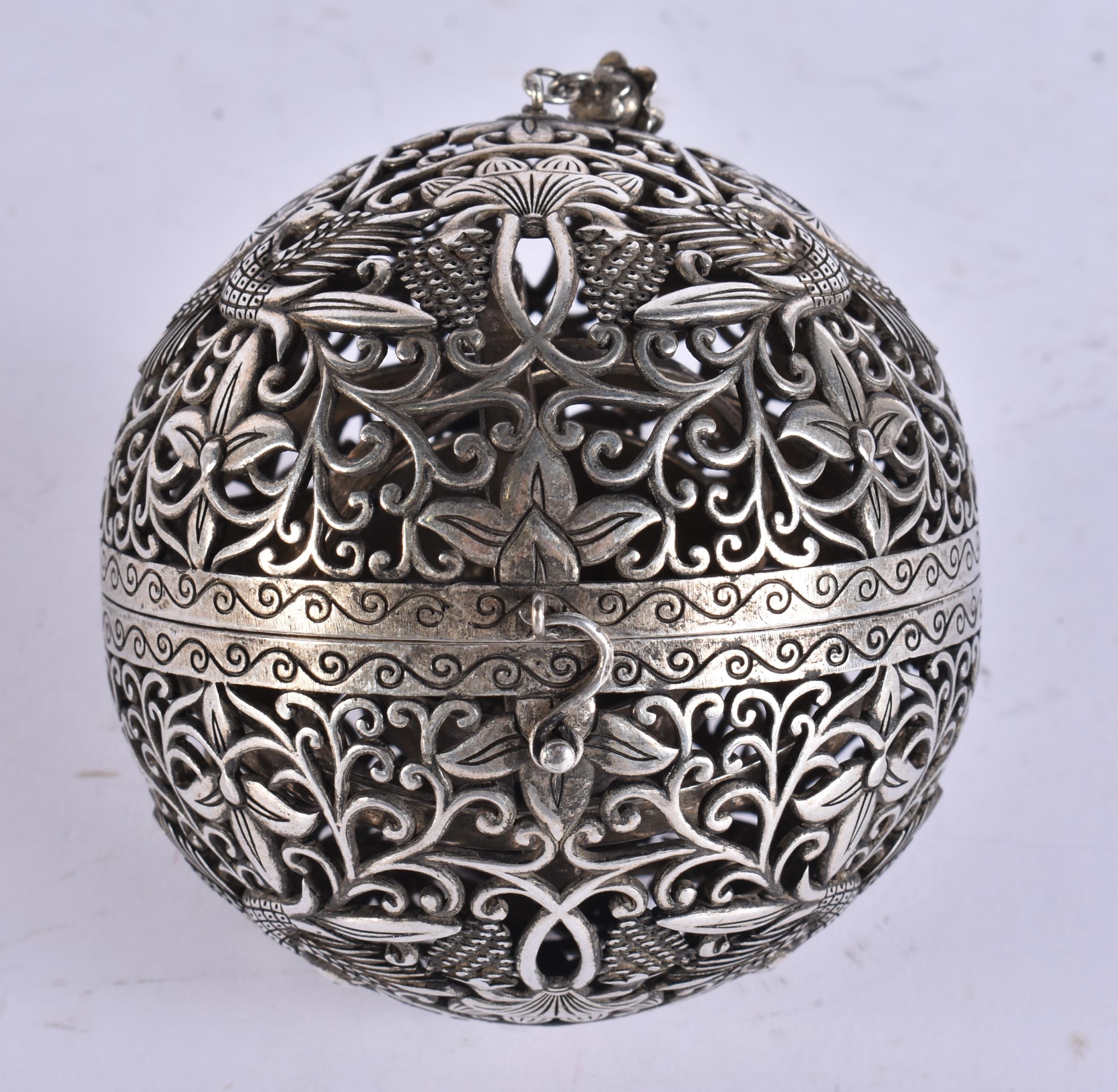 A CHINESE WHITE METAL TRAVELLING CENSER. 403 grams. 10 cm wide.