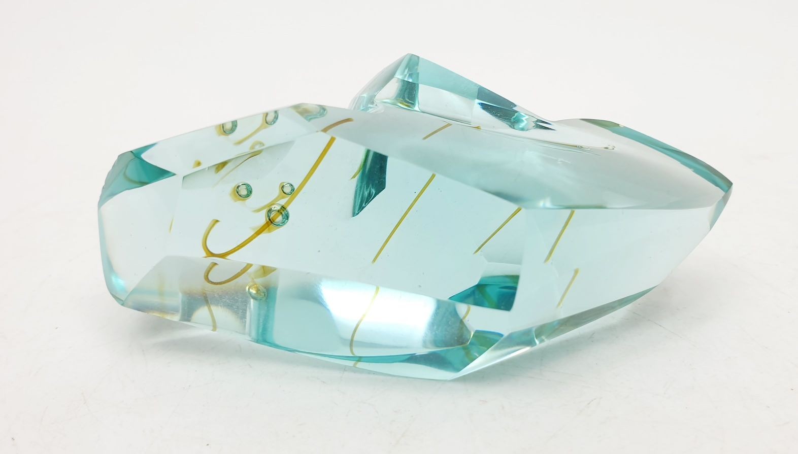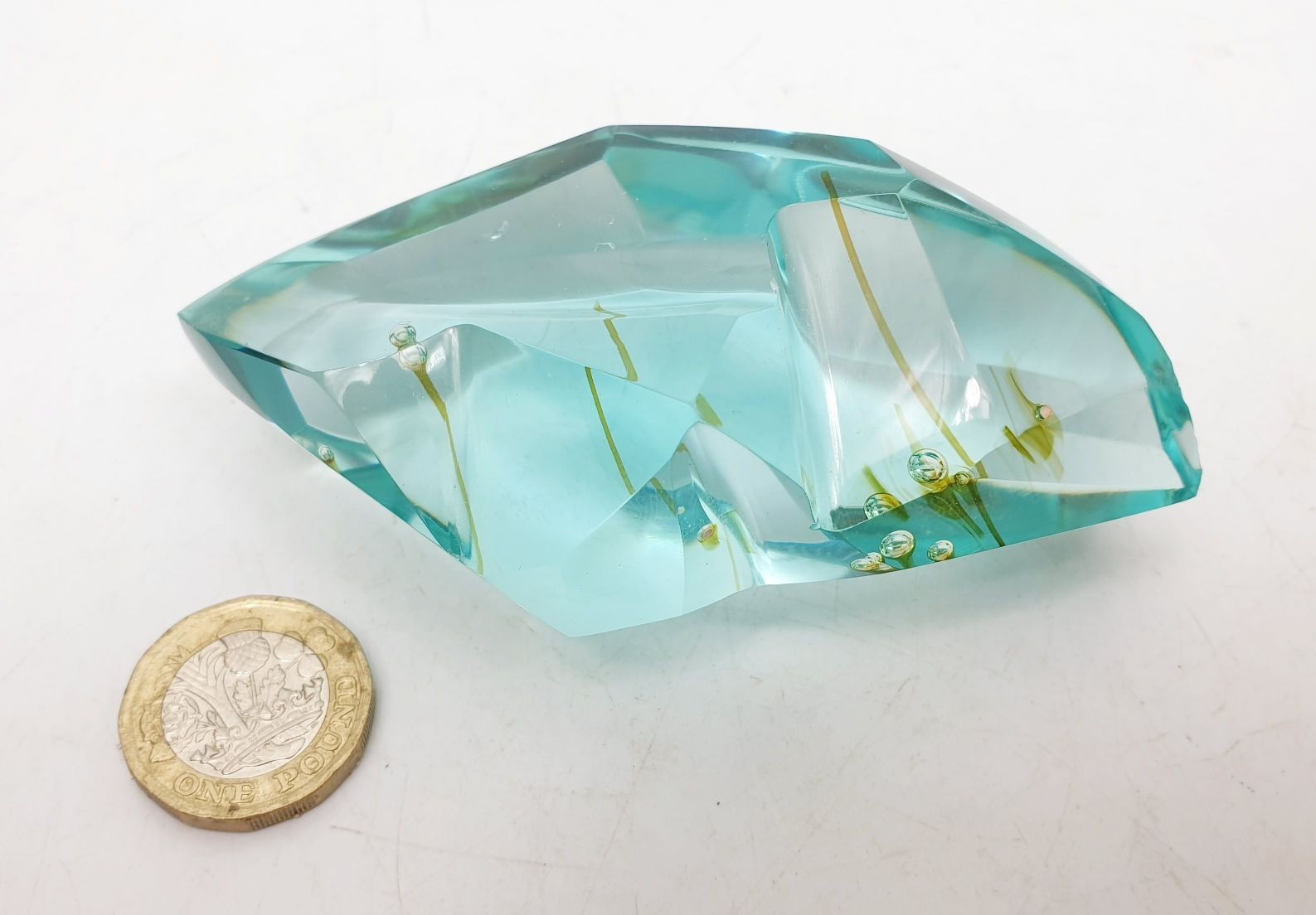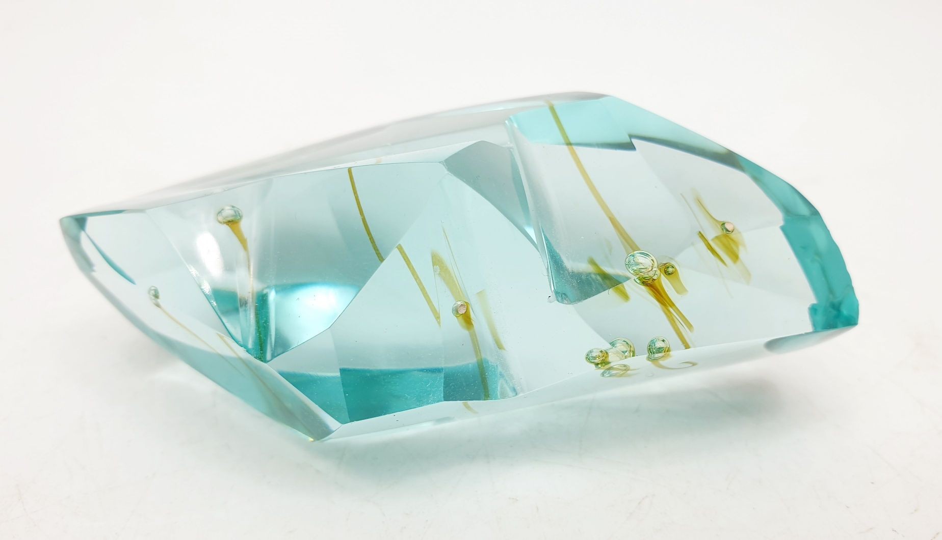 A glass specimen with air bubble inclusions which have left coloured streaks, length 3.75". UK shipping £14.