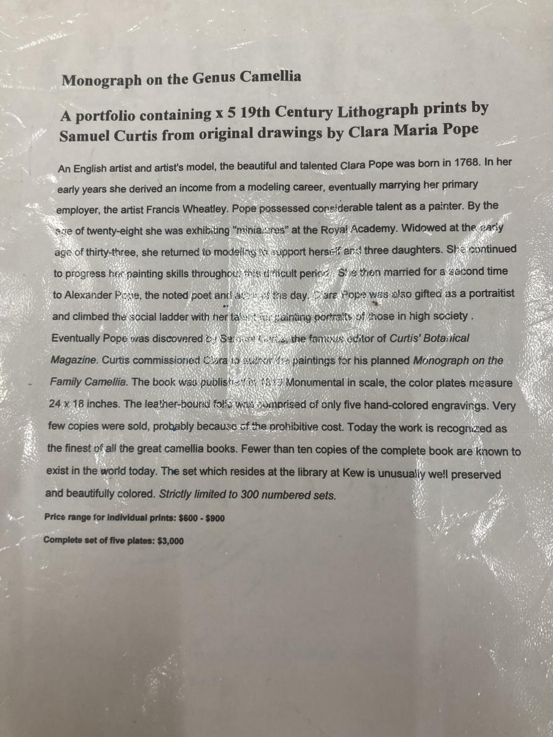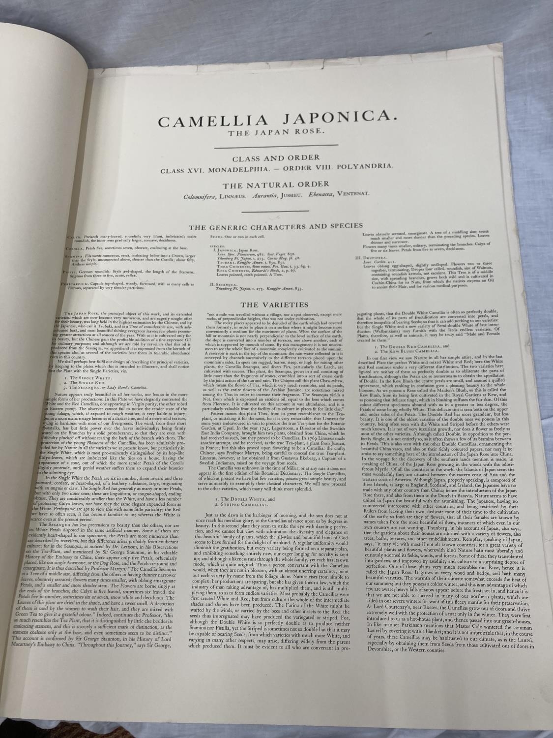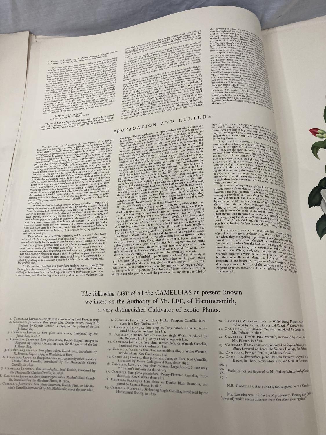 A MONOGRAPH ON THE GENUS CAMELLIA, 1960'S REPRINT SOFT BACK WITH FIVE COLOURED PRINTS, ORIGINALLY PRODUCED IN 1819