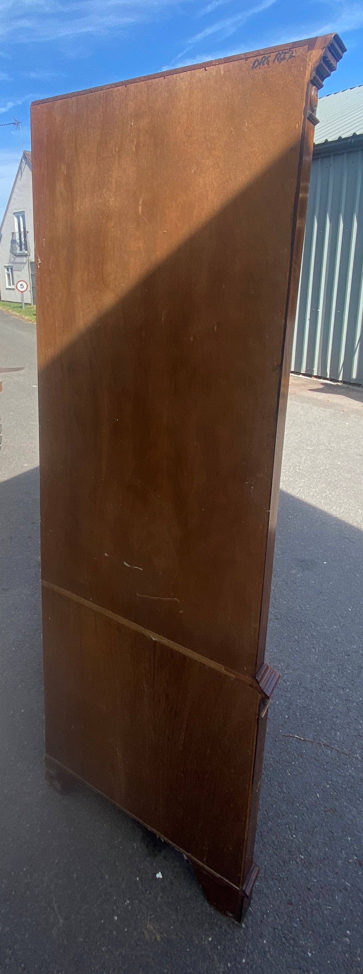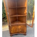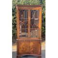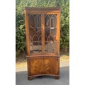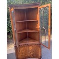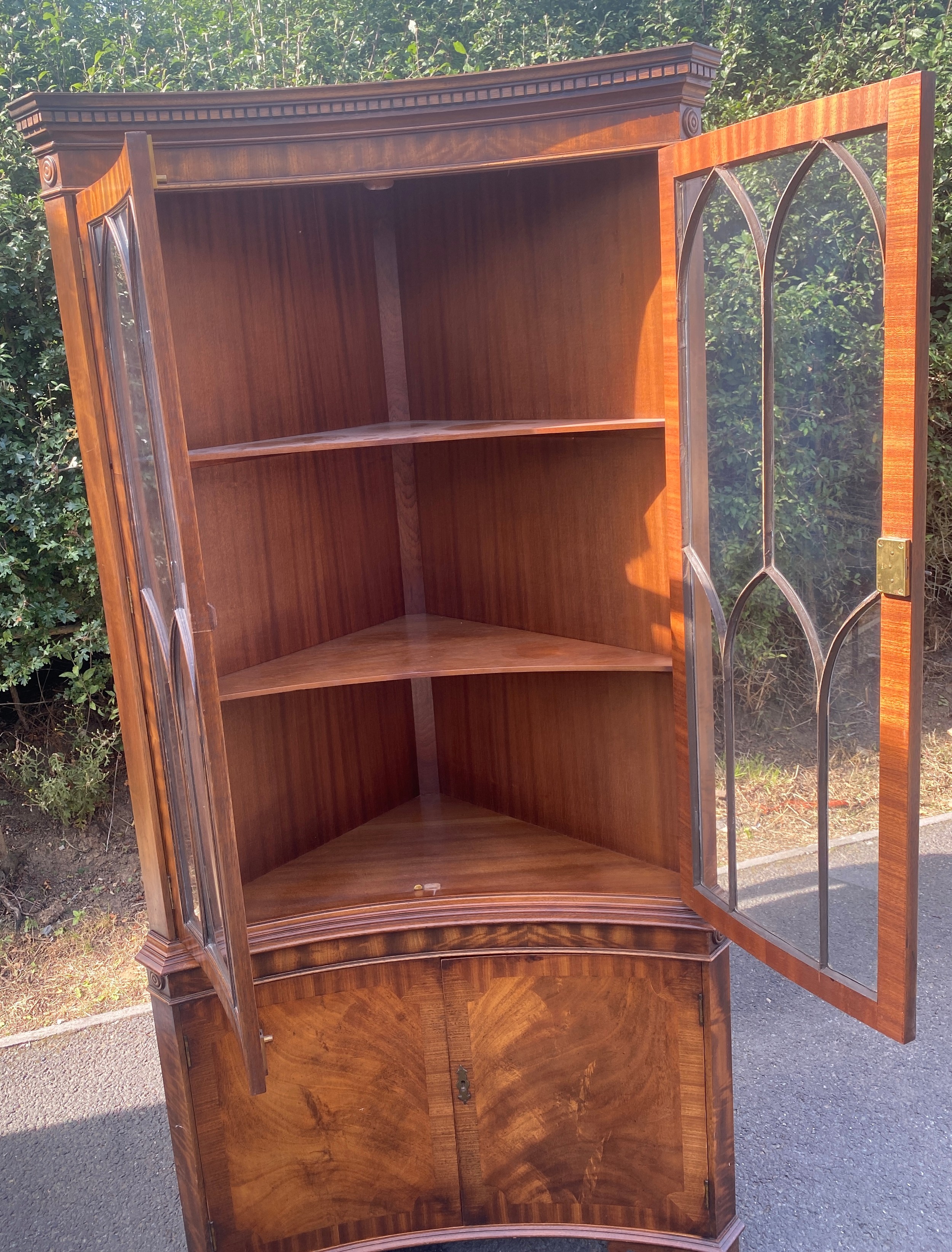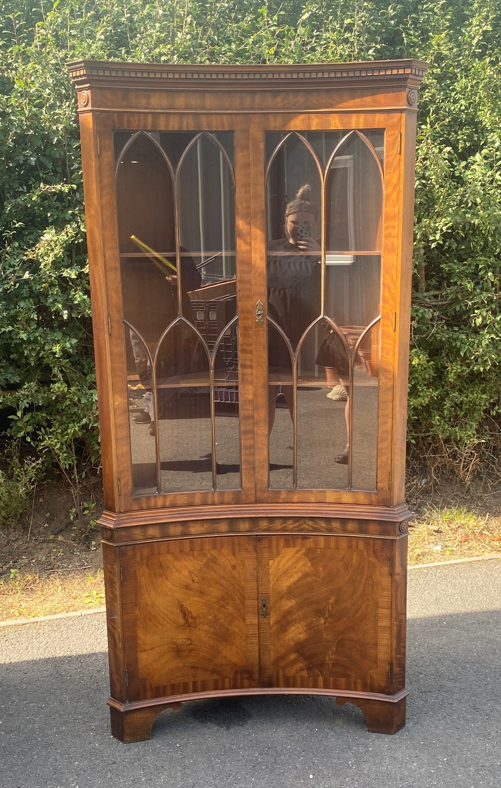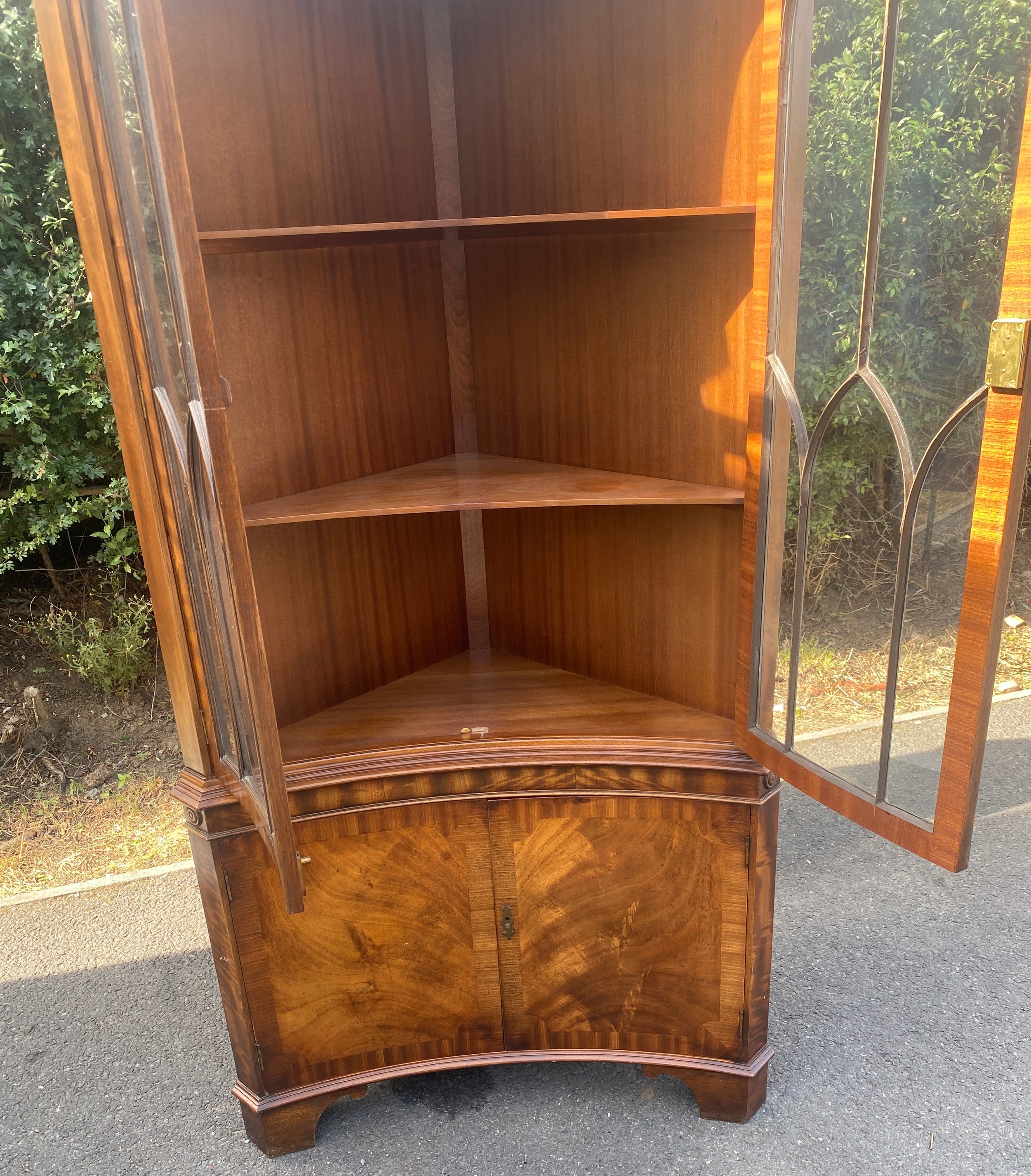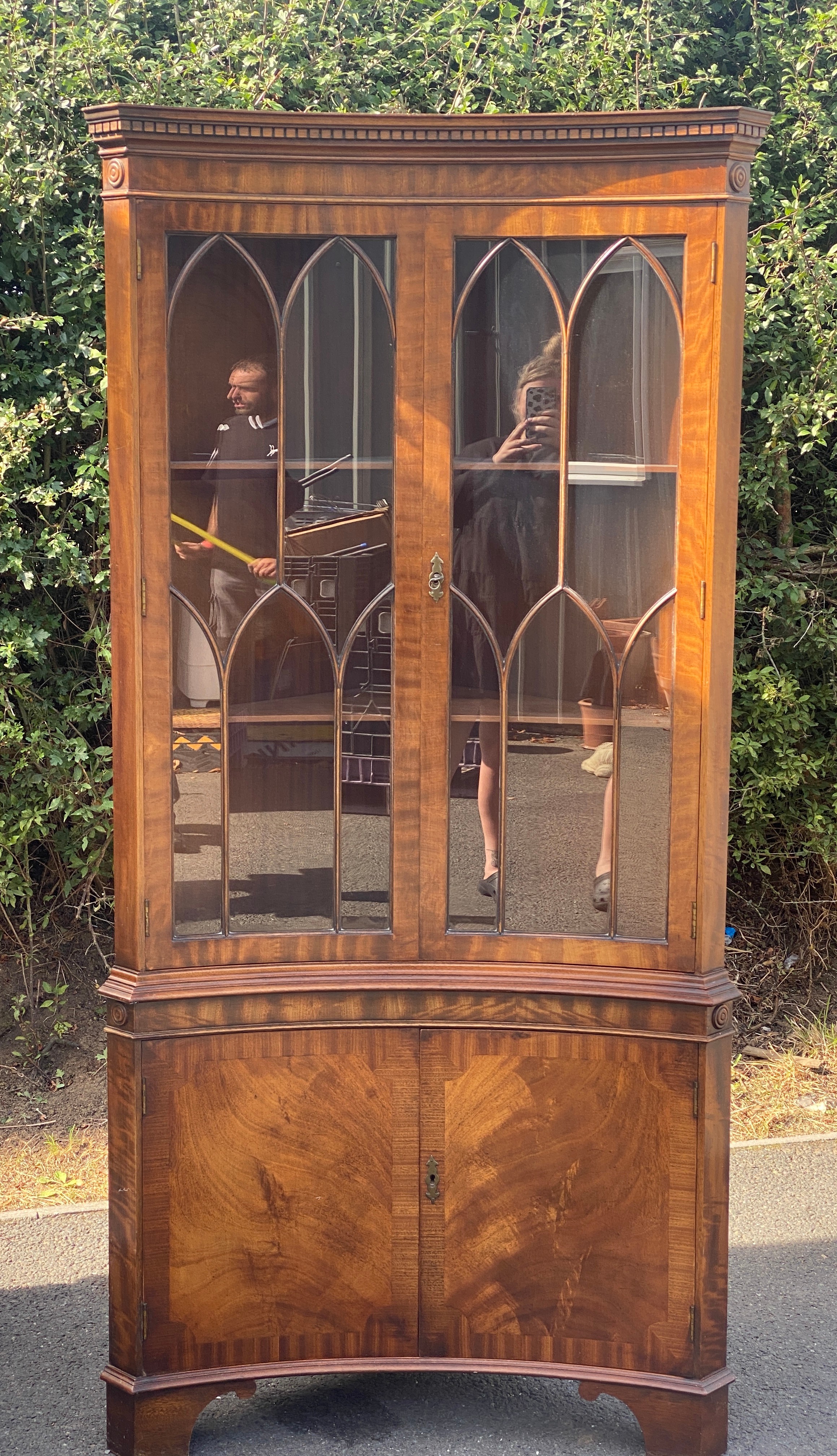 Flamed mahogany concave corner unit 74 inches tall 36 inches wide 24 inches depth