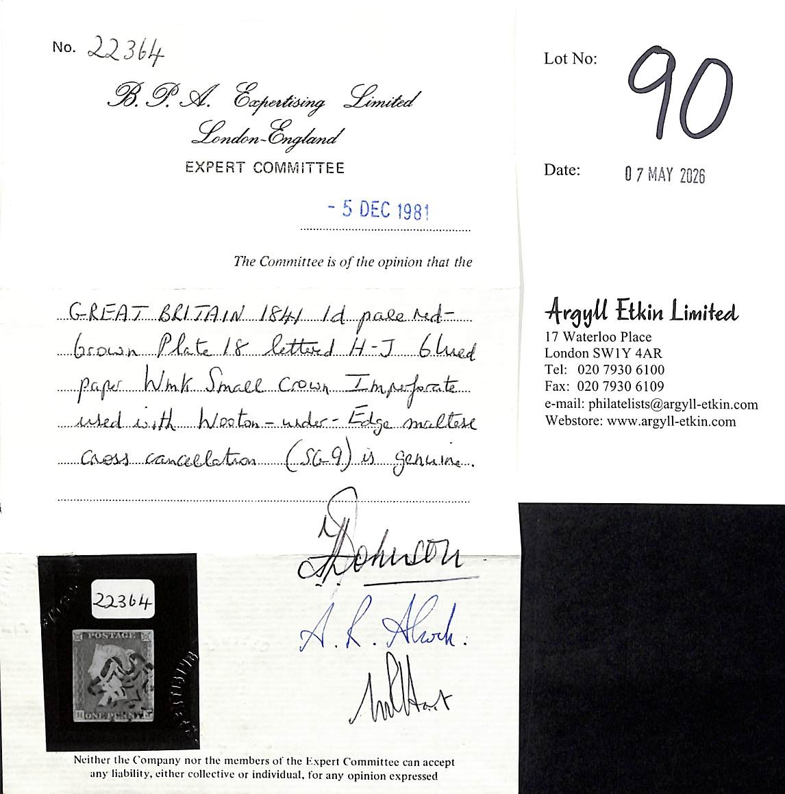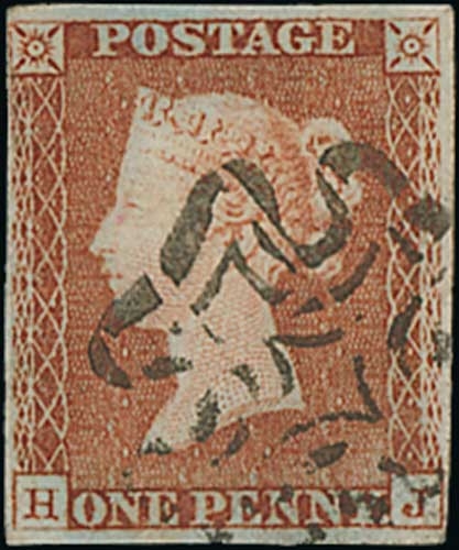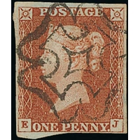 1841 1d Pale red-brown, HJ plate 18, small to good margins, with the distinctive Wotton-Under-Edge Maltese Cross in black, very scarce. With B.P.A Certificate (1981). S.G. £4,500. Photo on Page 12.
