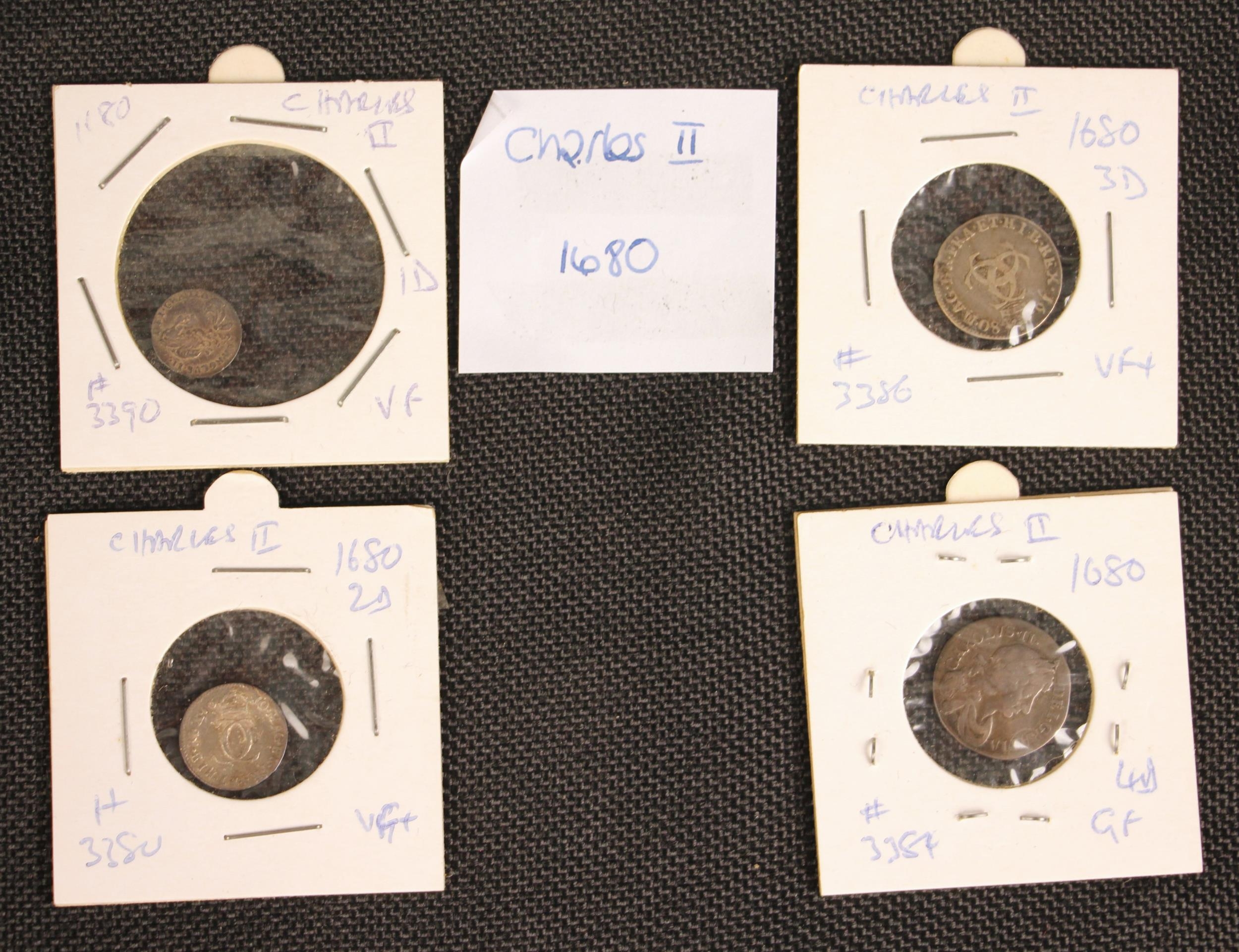 Charles II (1660-1685), 1680 Maundy 1d, 2d, 3d, and 4d