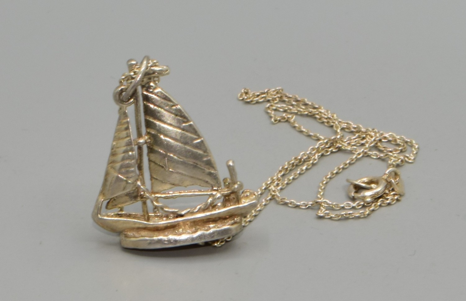 Silver Yacht pendant necklace with silver chain 6.6grams