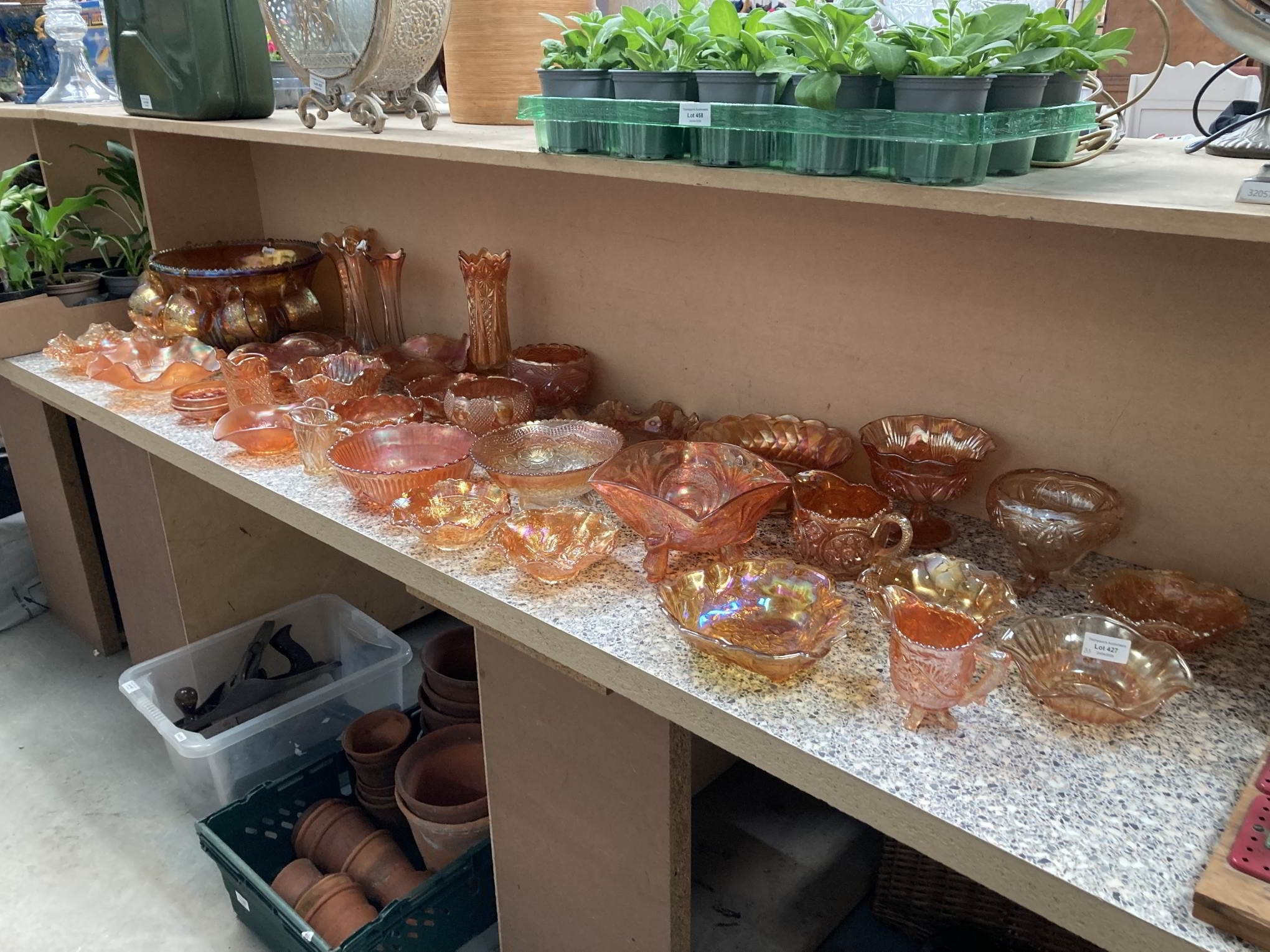 33 pieces of carnival glass inc. punch bowl & glasses, vases, bowls, jugs etc.