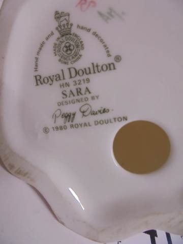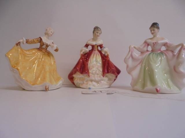 Three Royal Doulton figurines - Kirsty, Sarah and Southern Belle, all designed by Peggy Davies, 9cm tall.