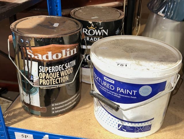 5L Coarse Matt White Paint + Sadolin 5L Satin Wood Protection + 5L Crown Timonox Acrylic Eggshell Fireproof Paint