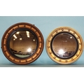 A gilt-framed circular convex mirror, the moulded frame applied with balls and with reeded ebonised slip, 45cm diameter and a larger Regency-style circular convex mirror, (in need of restoration), 53cm diameter, (2).