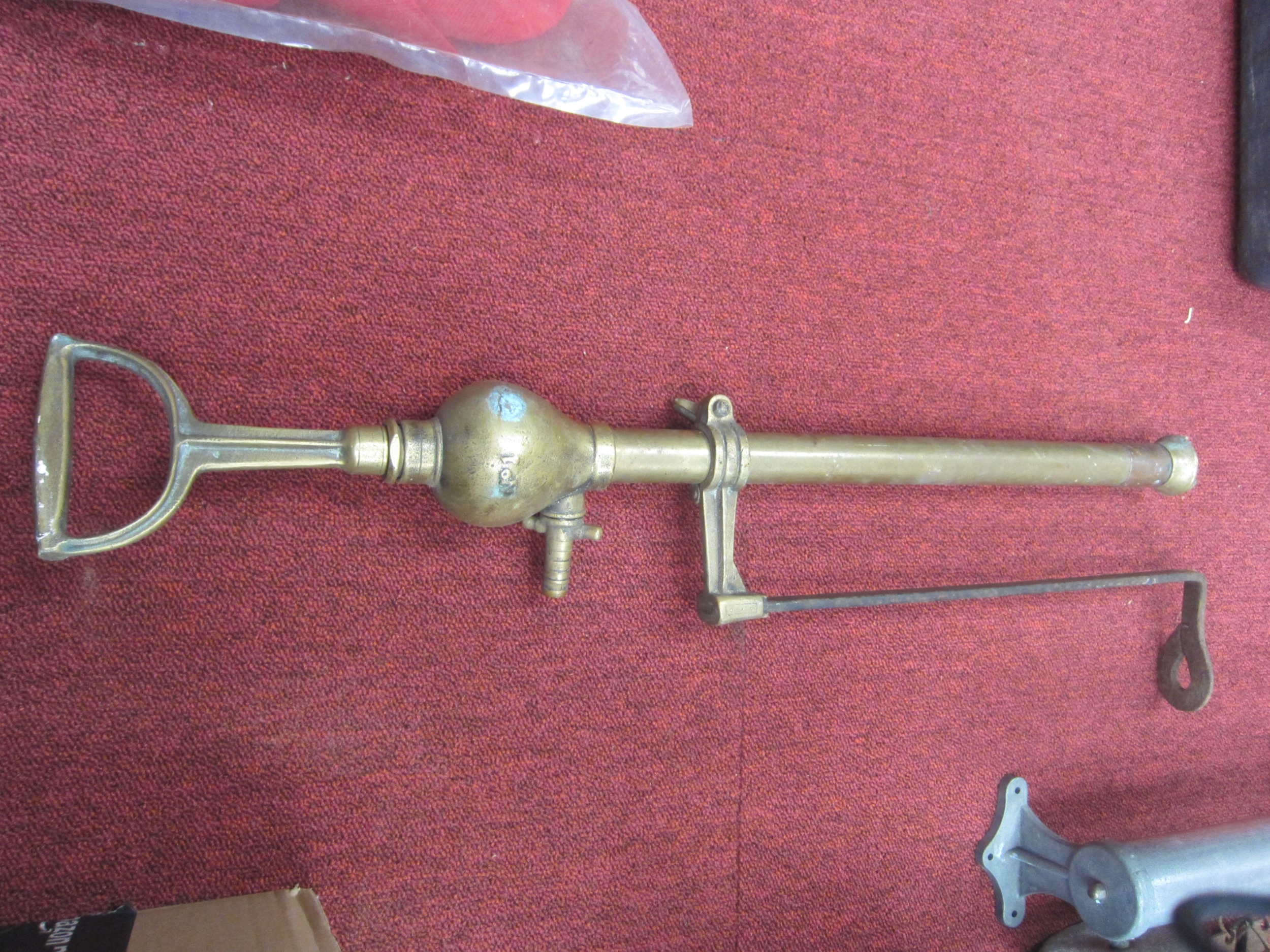 A brass "The Iron Arm" stirrup pump