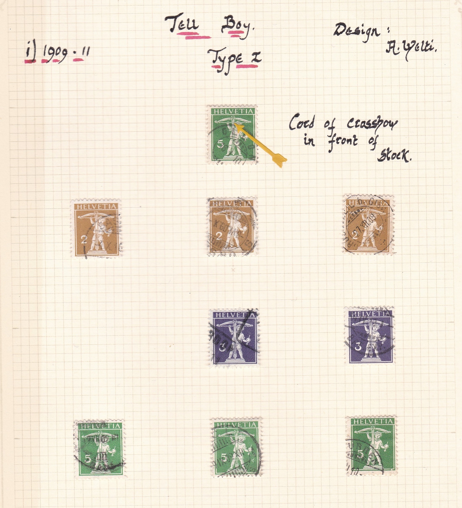 Switzerland 1908-1909, two pages with colour variations. Page 1 SG 247-249 used Michel 111-113, page SG 250-252 used Michel 114-116. Cat £72