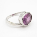 9ct white gold oval amethyst ring with wrap around bezel (5.4g) size L 1/2