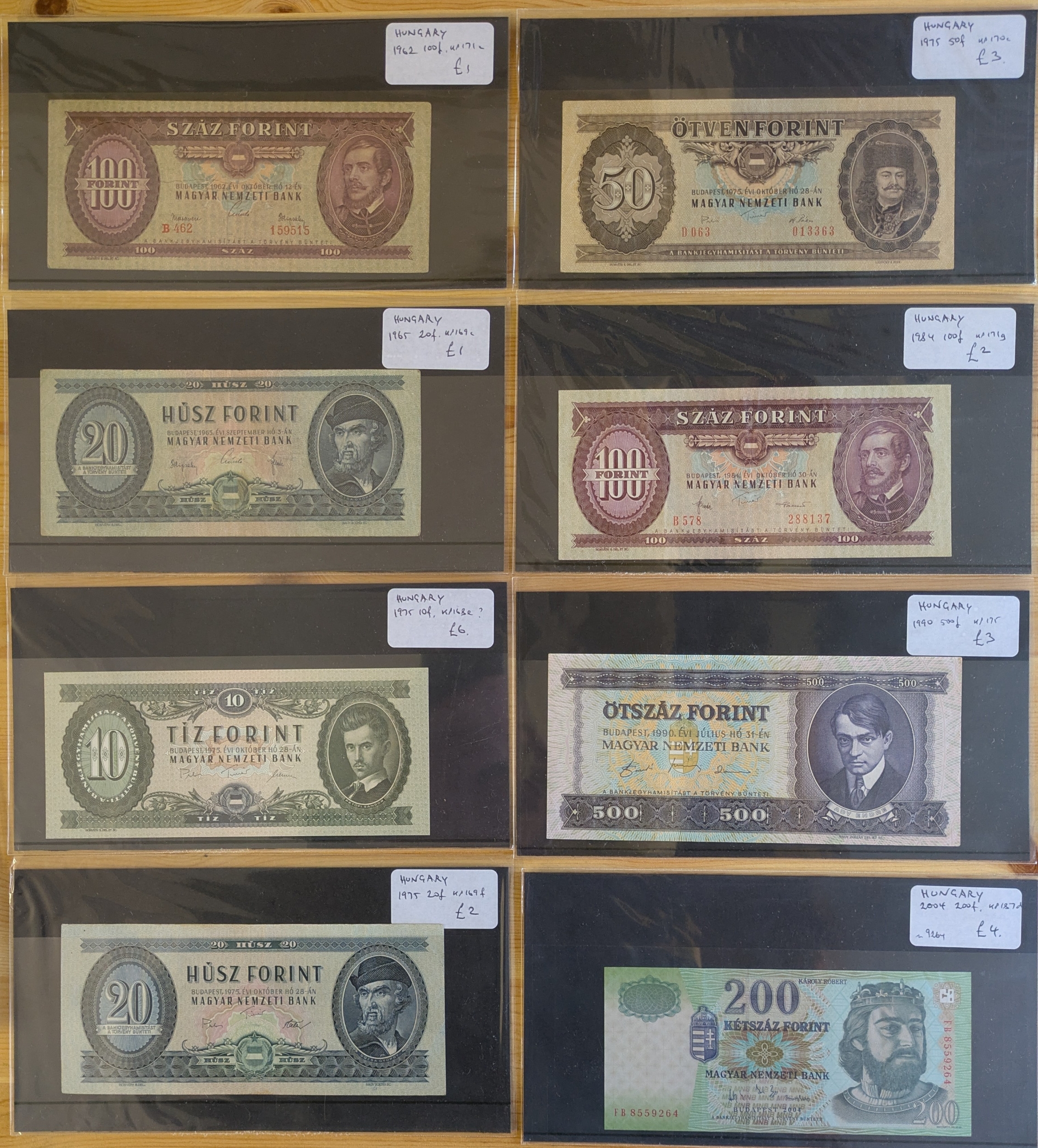 BanknotesHungary; 1962-2004 seln. of eight different notes, priced retail at £22.
