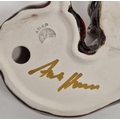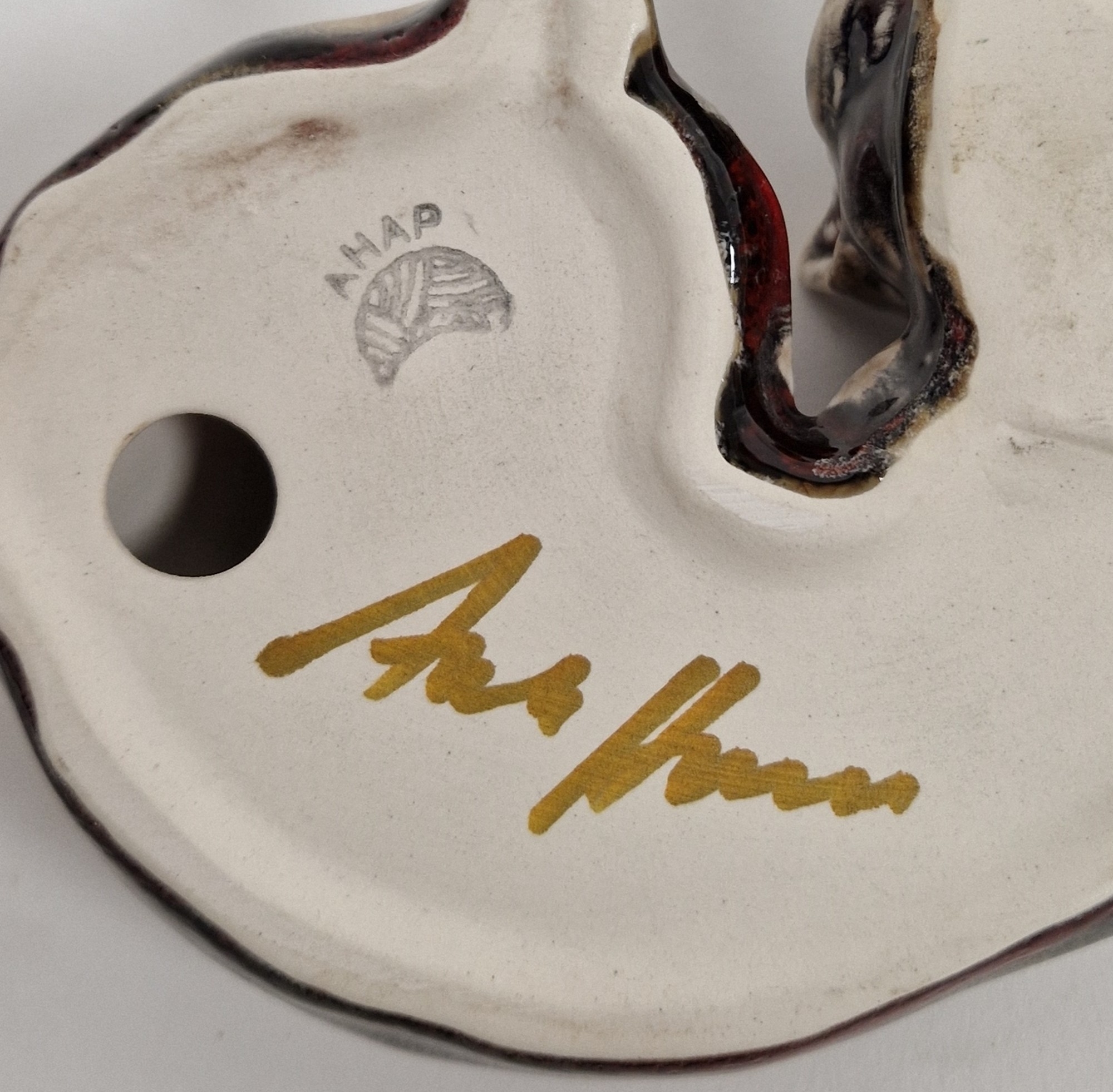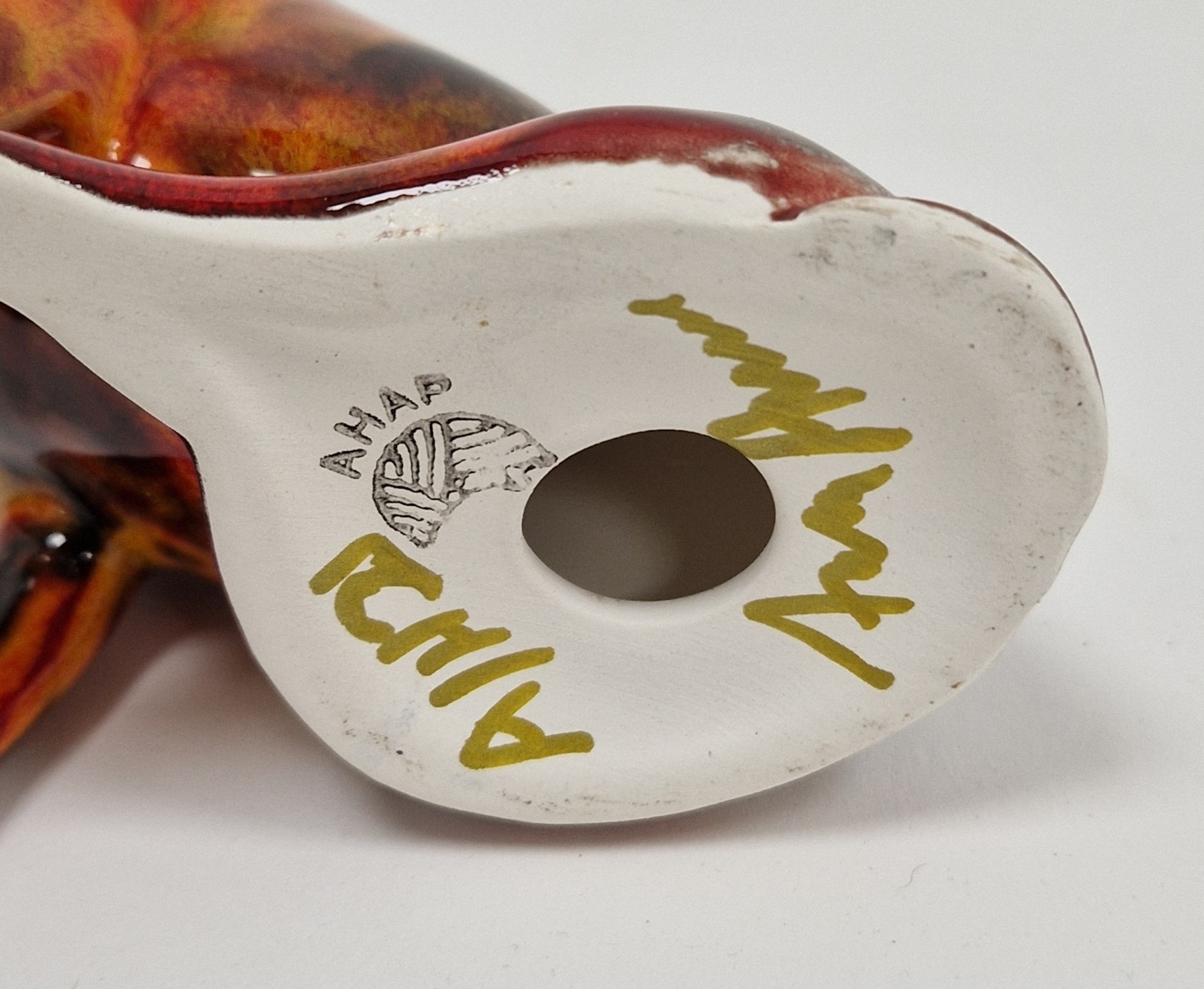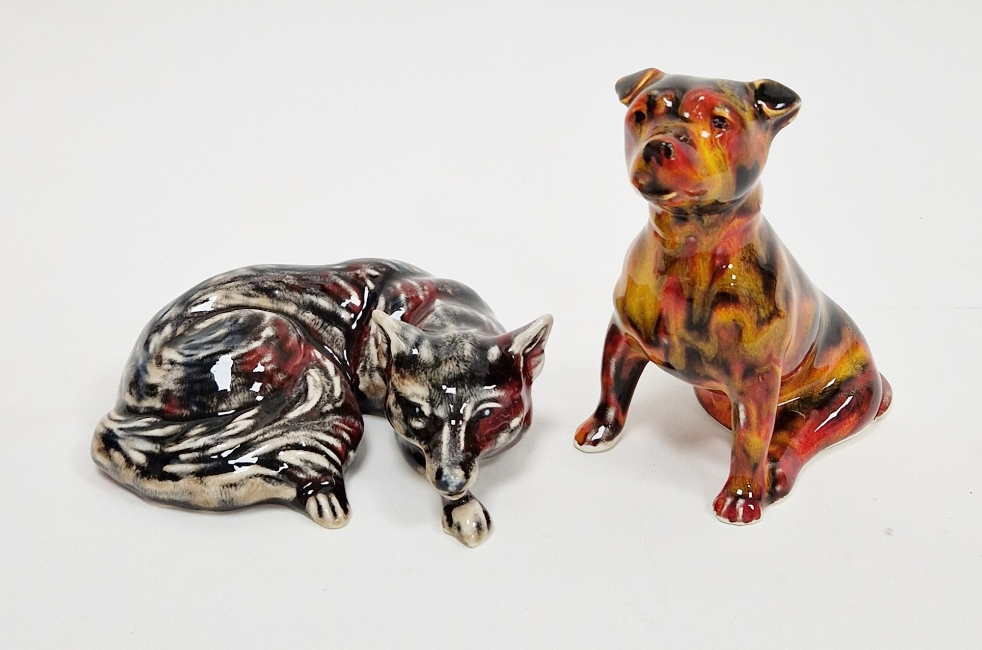 Model of a Staffy dog by Anita Harris, 11cm high and a fox, recumbant, both signed in gilding, printed black AHAP marks (2)