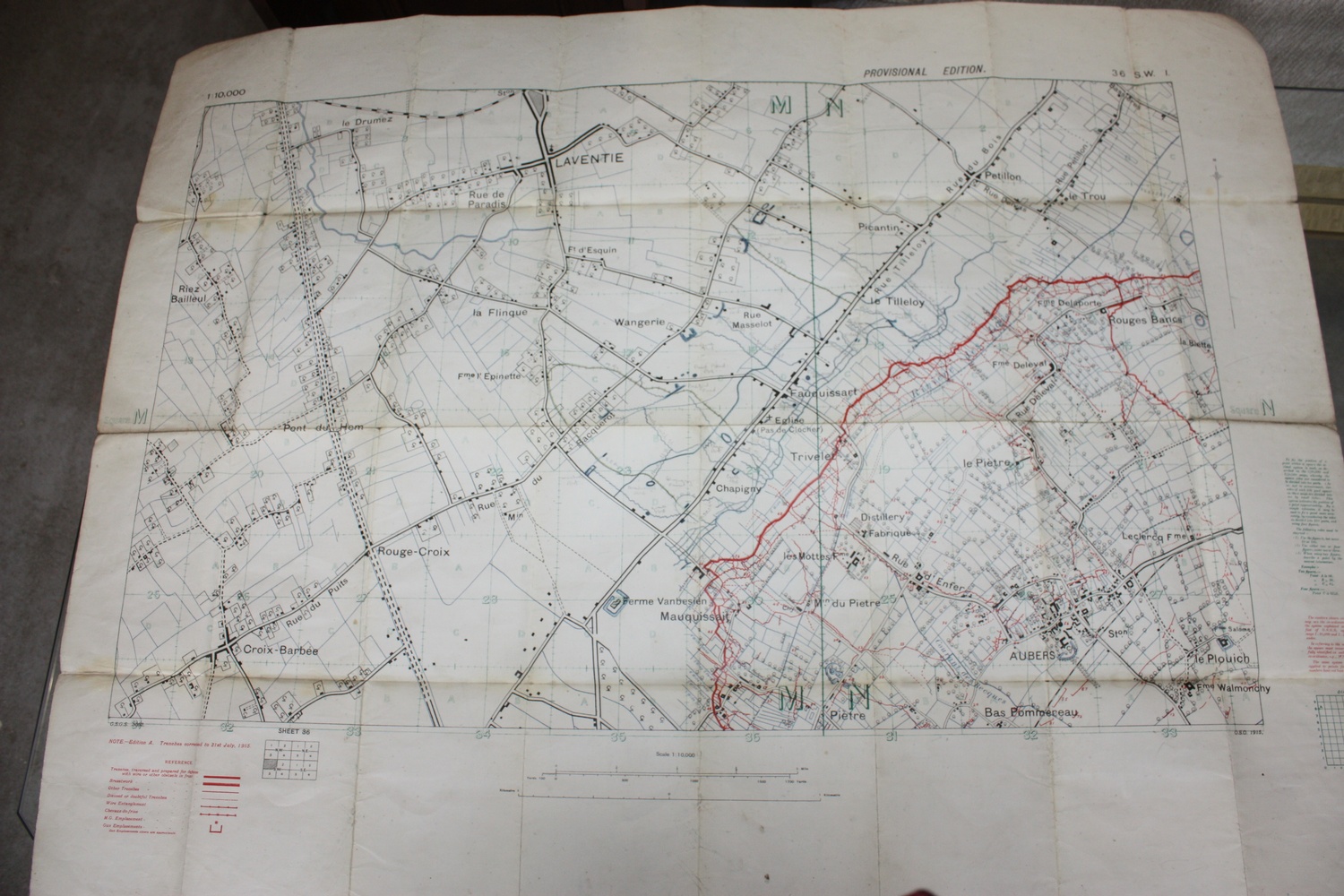 Original WWI (1915) War Office British Trench Map (on Linen Cloth) Sheet No. 36 SW1 Marquissant