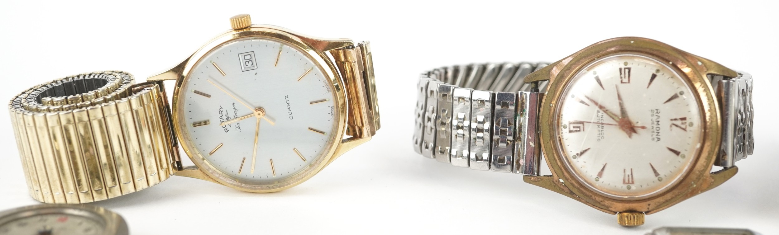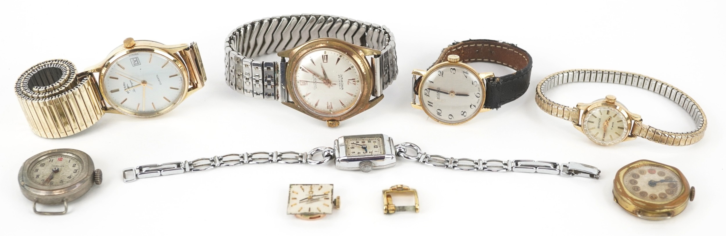 Vintage and later ladies and gentlemen's wristwatches including Ramona, Rotary, Roamer and an Omega ladies wristwatch movement.