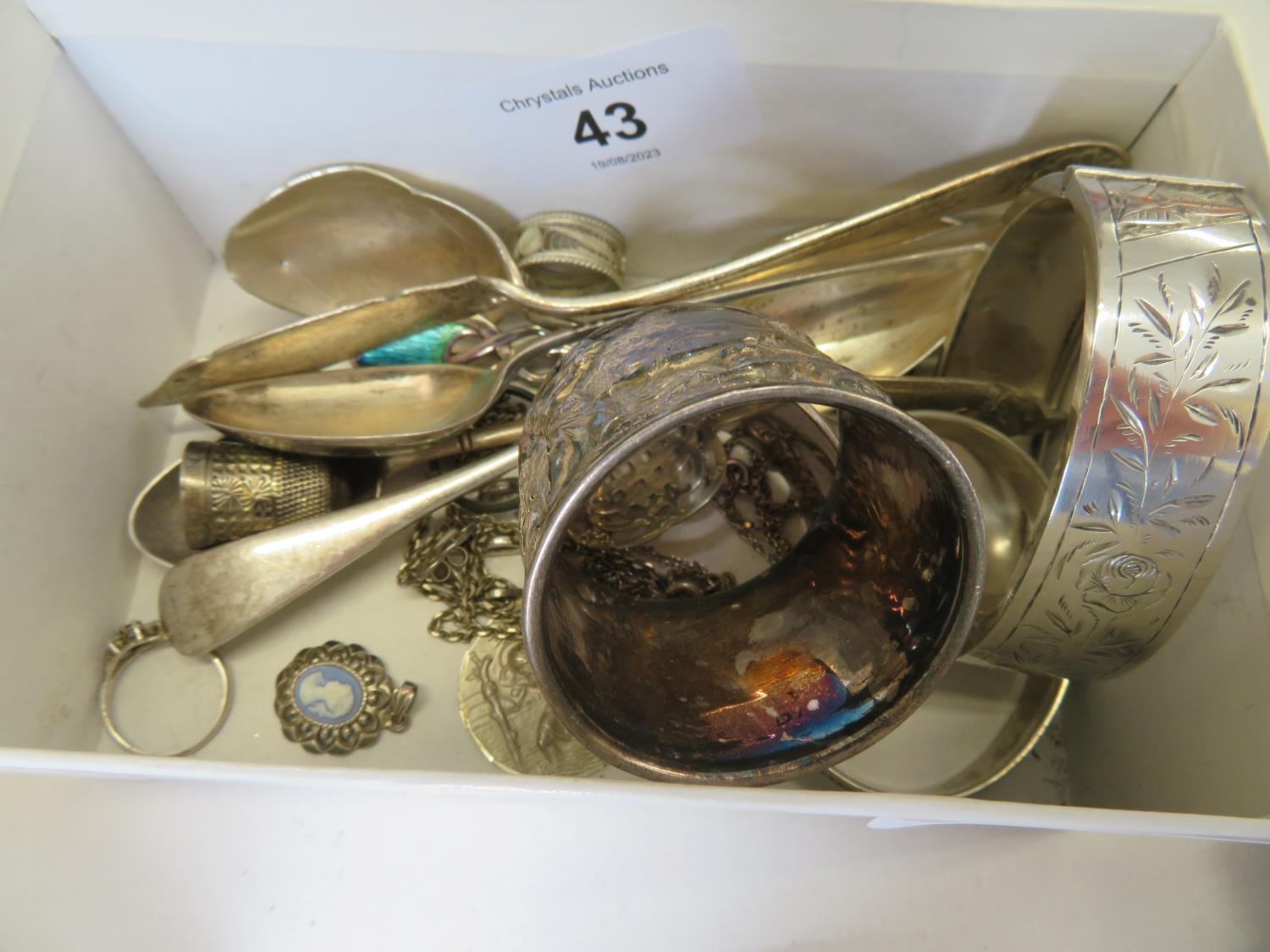 A collection of scrap silver including bracelets, napkin rings, chains - wt. 10 ozt