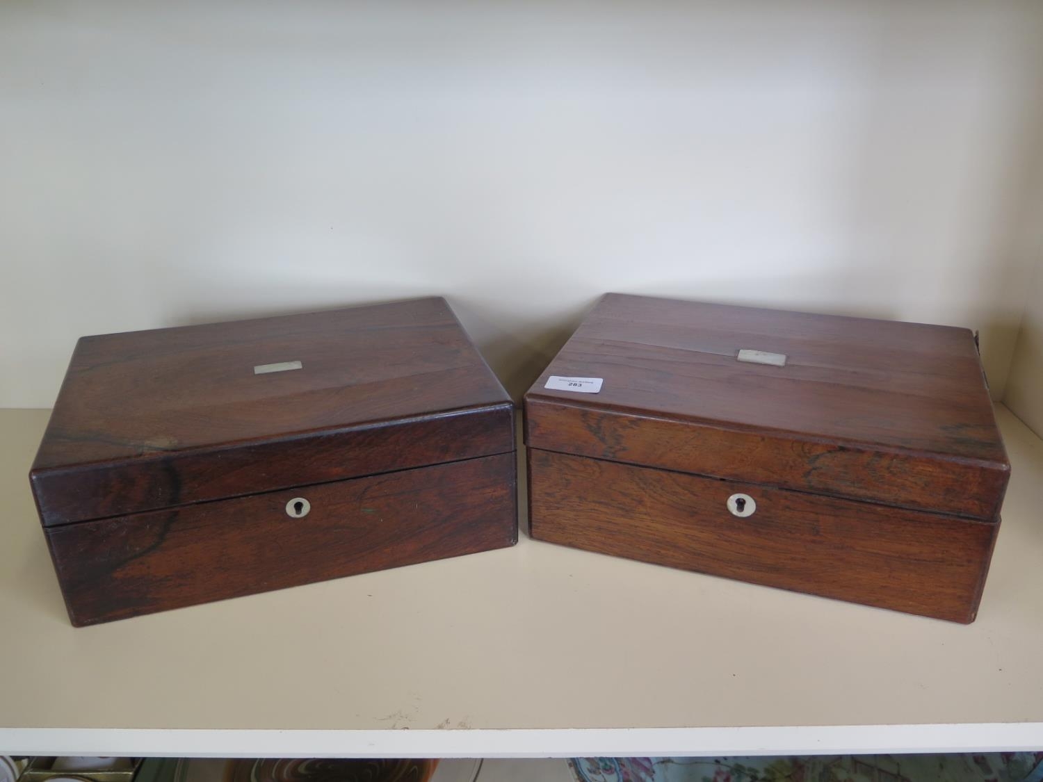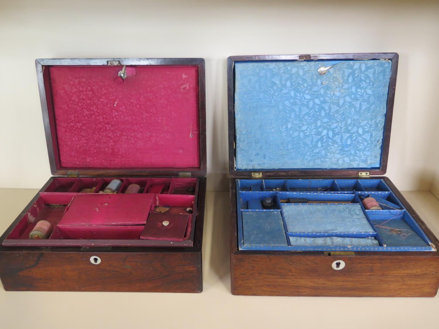 Two Victorian Rosewood sewing/jewellery boxes both in need of some restoration