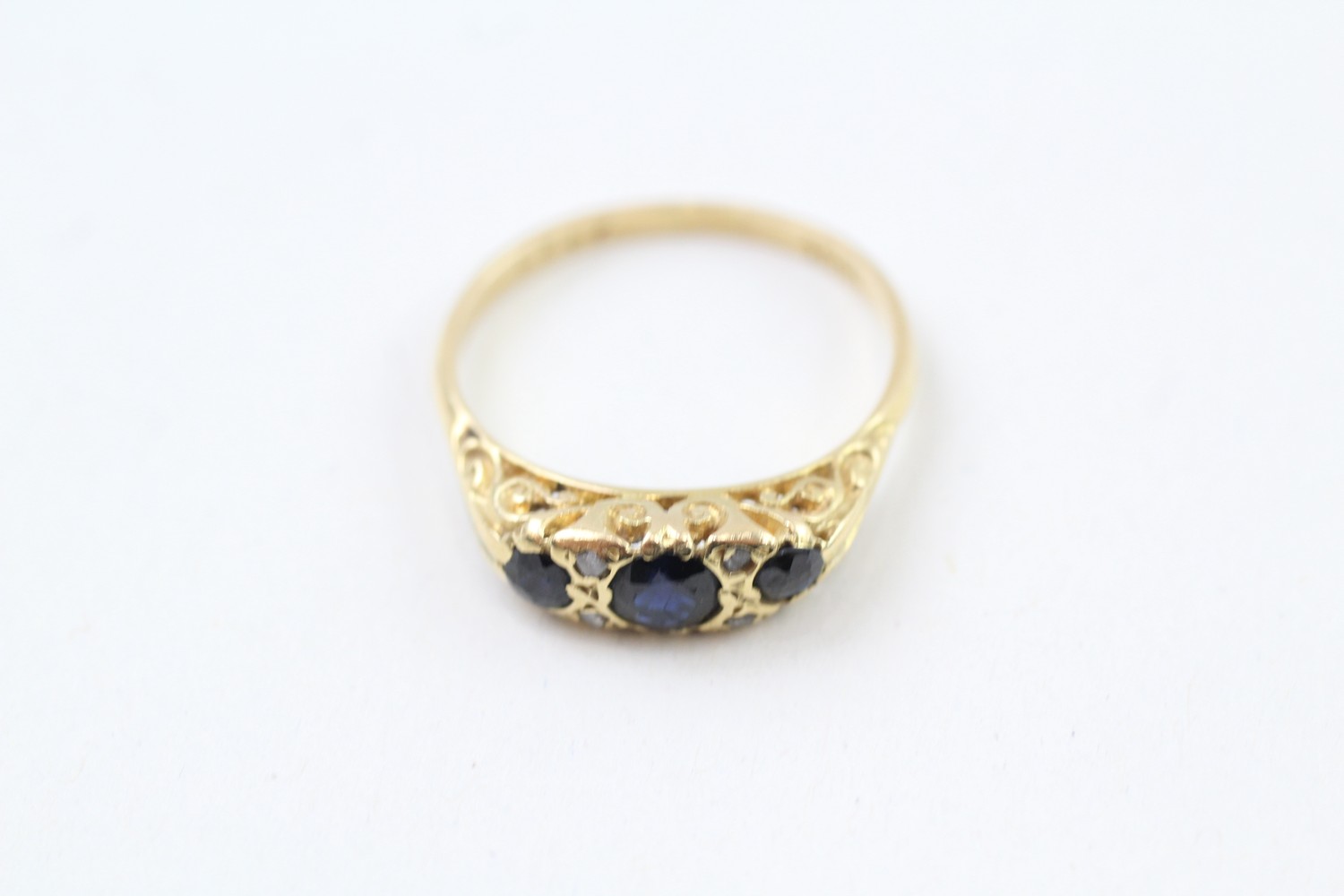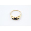 AN 18CT GOLD, DIAMOND AND SAPPHIRE SEVEN STONE RING, Weight: 2.8gms