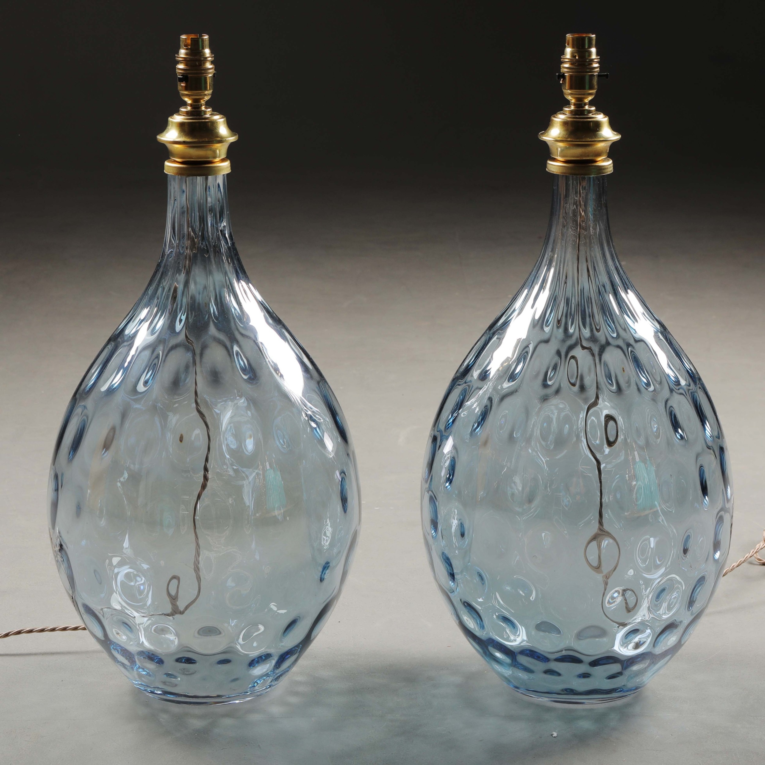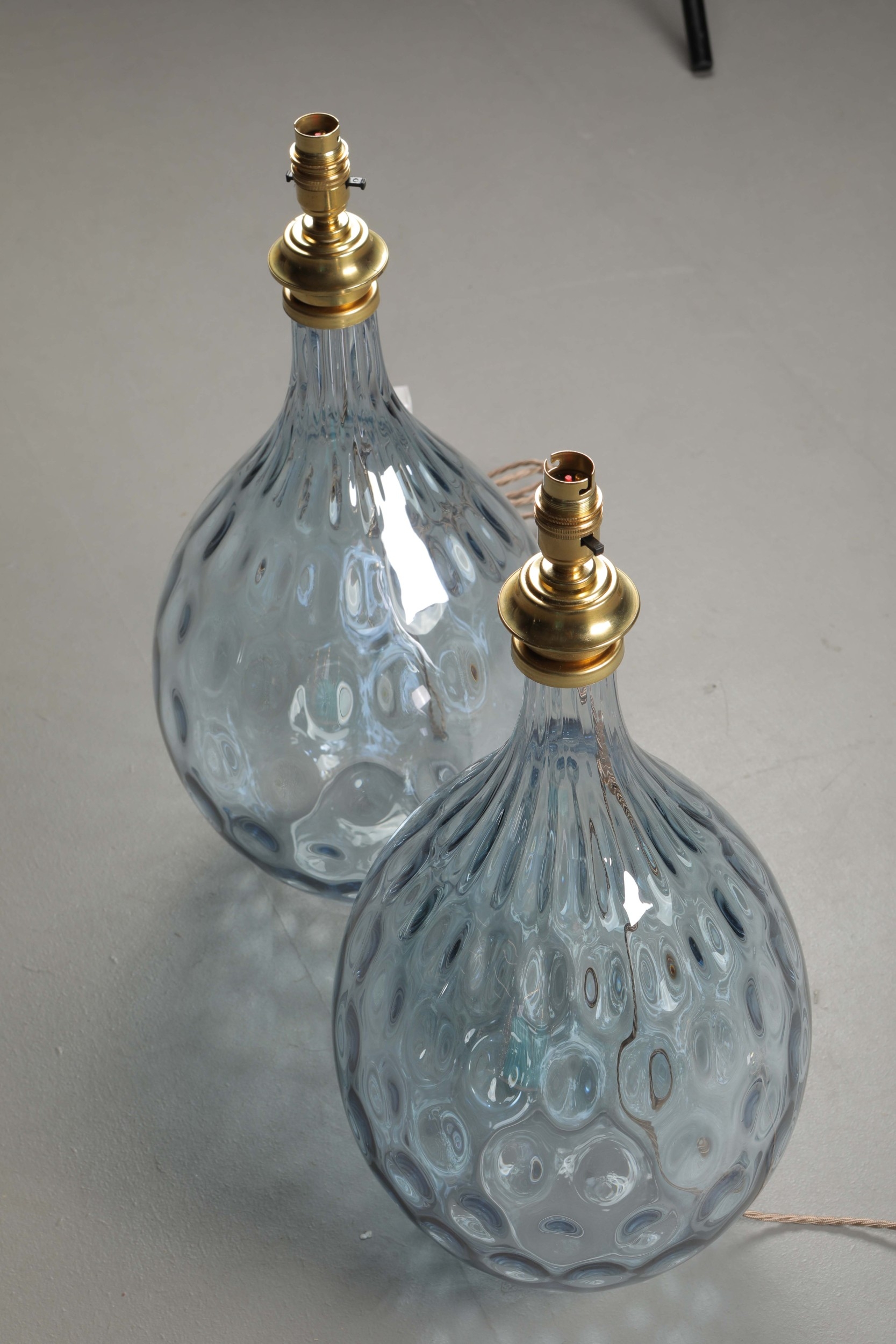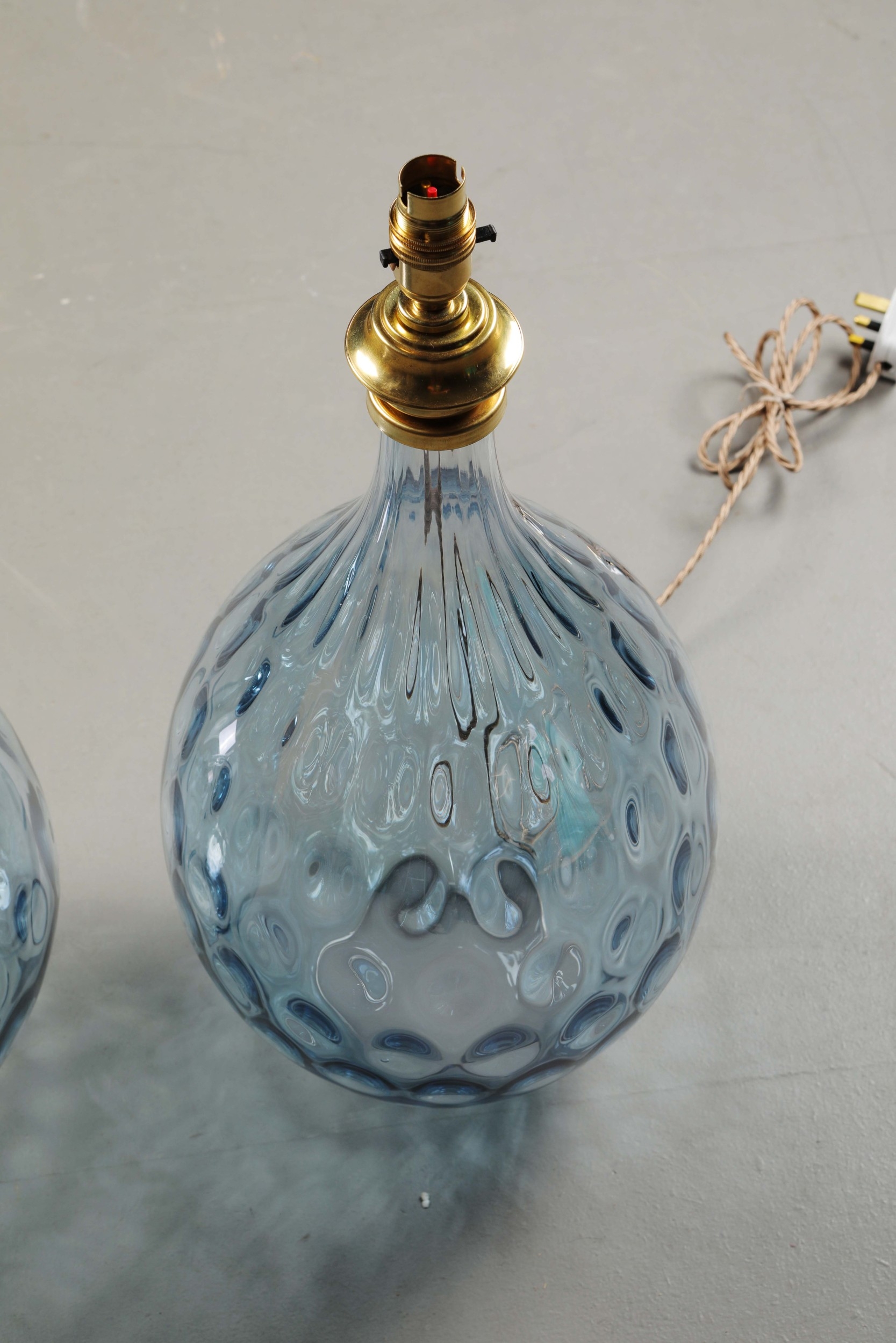 MURANO STYLE DIMPLED GLASS TABLE LAMPS, A PAIR. 58cm H approx. (2).