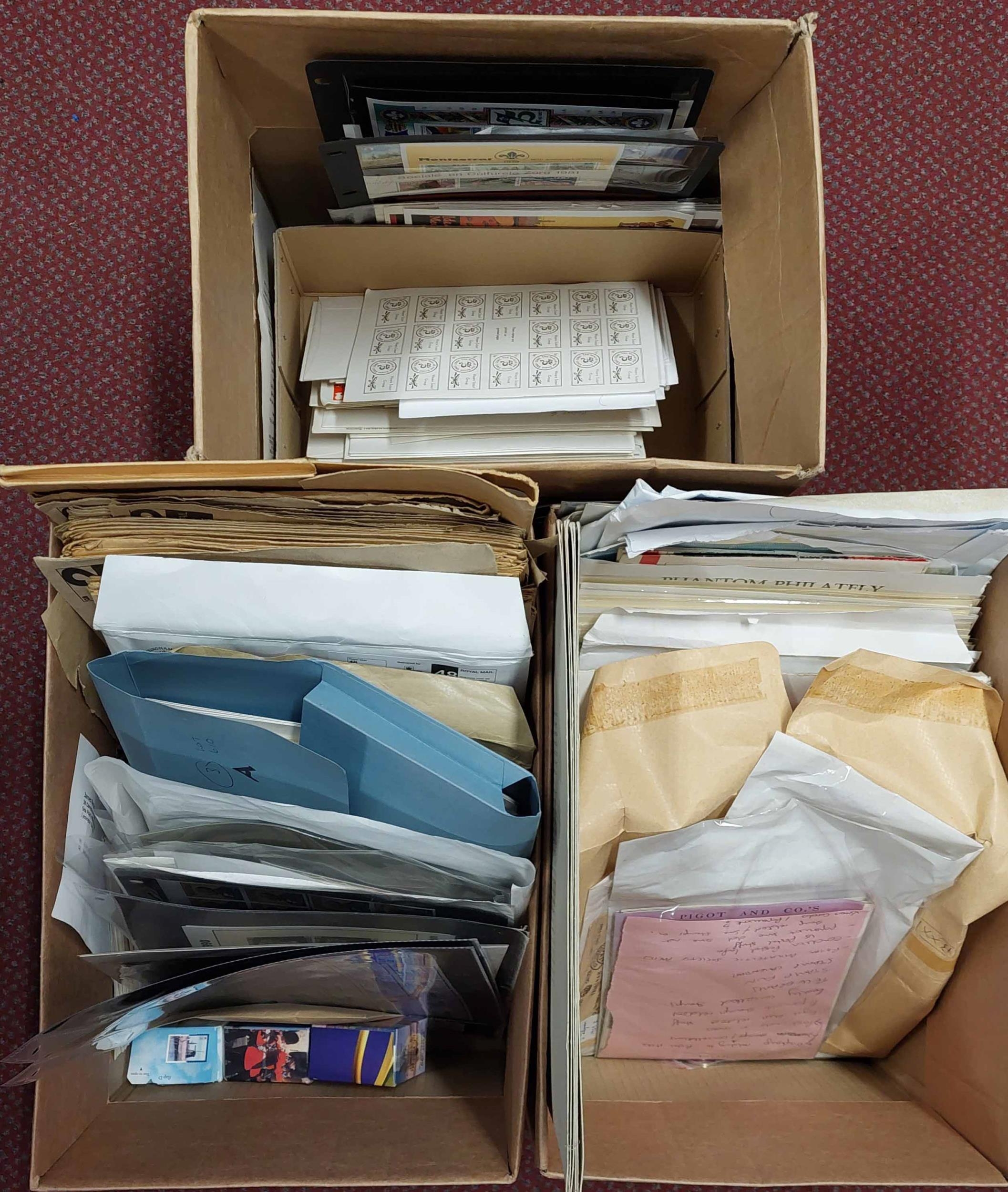 CINDERELLAS, SCOUTS AND EXHIBITIONS: Three cartons holding a very assorted mixture. Many cinderellas inc. some pro-Brexit, some from stamp clubs and exhibitions, but particularly many issues and sheets manufactured by Victor Short that draw inspiration from old 'patriotic' labels such as the Boer War Fund. Inc. carton of c.50 scouts covers, labels and other items. Also assorted stationery and Royal Mail related paraphernalia. (Large qty) Cross Reference: CINDERELLAS, EXHIBITIONS