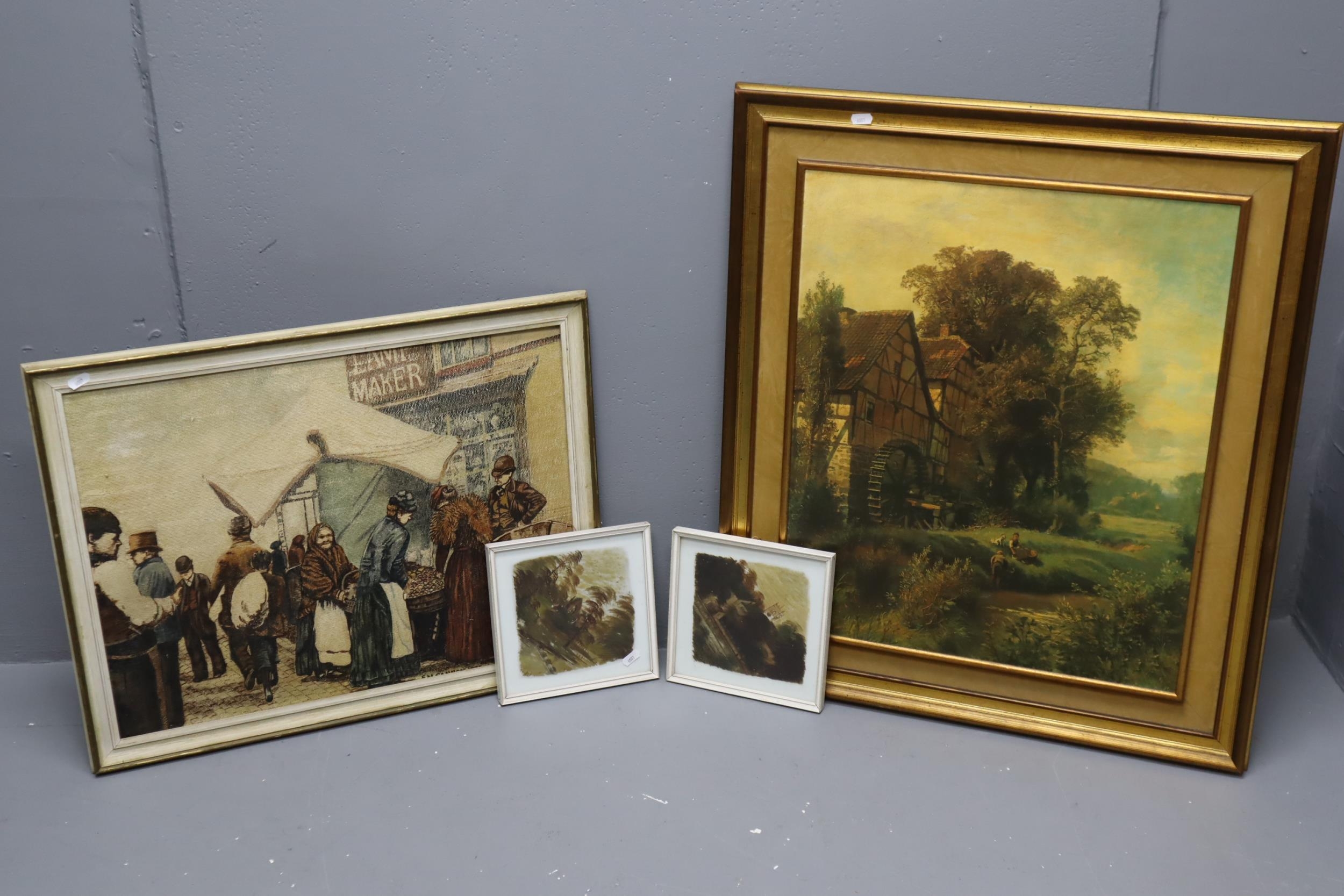 Selection of Framed Art to include Two Decorative Tiles, The Miller's Children By John Constable Print (Approx 31"x27.5"), And S M Cannon Original Oil on Board Depicting Swan Street in Manchester